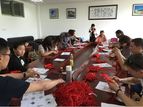 中国结是中华民族特有的一种手工编织工艺品,其独特的情致与智慧是古老中华文明的一个侧面体现。为加深留学生对中国文化的了解,402cc永利在2016年5月17日下午组织了一次中国结制作活动。