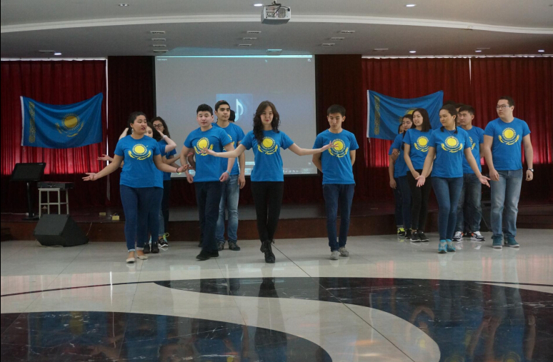 活动中,热情的哈萨克人为客人们准备好了传统的美食,有自己亲手制作的烤面包,有各式各样的蔬菜水果,也有非常正宗的牛肉汤。所有哈萨克斯坦学生统一身着印有哈萨克斯坦国旗的蓝色T恤,体现了浓浓的节日气氛。哈萨克斯坦学生们准备了各种各样的民族节目,在女生ALIYA在献上一支民族舞之后,全场师生一起载歌载舞,现场气氛达到了高潮。随后男生ADILKHAN也为观众献上了由传统乐器--冬不拉演奏的乐曲。