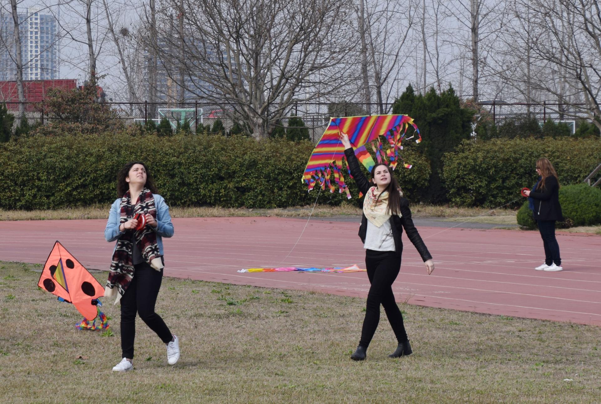 3月15日下午,阳光正好,暖风阵阵,舒适的气候也给留学生们带来了好心情。拿到风筝后,留学生们个个跃跃欲试,迫不及待的动手将风筝组装好,绑好风筝线,准备开始放飞风筝。留学生放飞风筝的本领可不小,不一会功夫天空上就出现了各种各样我们留学生放飞的风筝,将校园操场的天空点缀出美丽的颜色。