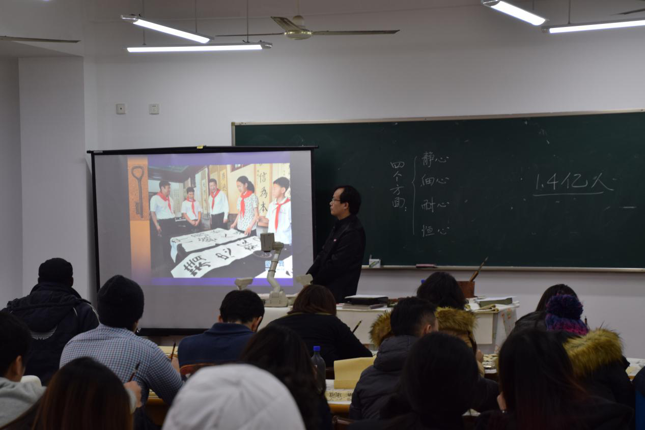 该讲座中,黄校长就中国书法、中国书法艺术特色进行了介绍与讲解,并结合中国一些著名的书法家、书法作品来剖析中国书法在陶冶情操、塑造性格、修身养性等方面的重要作用。与此同时,黄校长结合目前的国际、时代趋势对中国的书法产业进行了分析并表达其希望在校留学生能体会中国传统书法的独特魅力的美好希冀。