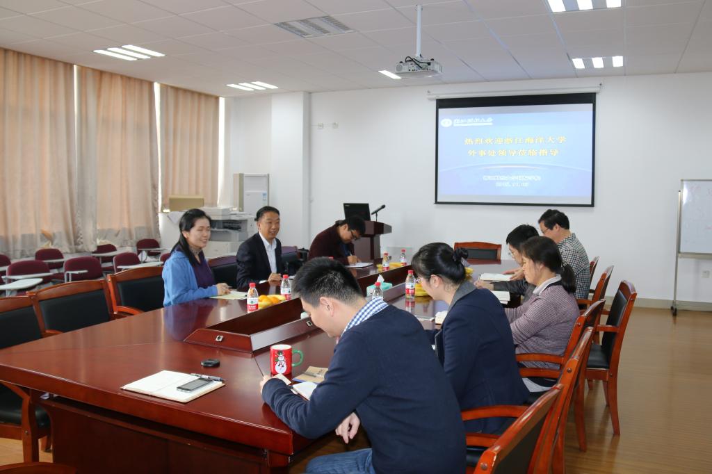近日,浙江海洋学院国际交流合作处处长吕华庆教授等一行三人来我402cc永利考察,管春林副院长热情接待了来宾,并在8号楼105会议室召开了交流会,402cc永利全体工作人员参加了会议。