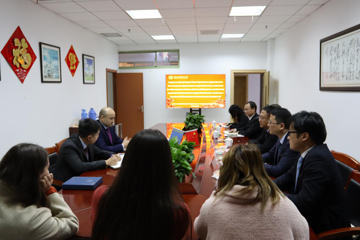 李占荣副校长简要介绍了我校基本情况、与哈萨克斯坦欧亚大学等多所高校和阿斯塔纳国际金融中心合作所取得的成绩,我校成功举办三届中哈合作论坛并在国内外赢得广泛影响。李占荣表示,我校一直重视与哈萨克斯坦的友好往来,在科学研究、人才培养、文化艺术等方面开展了交流与合作,感谢哈萨克斯坦教育与科学部、哈萨克斯坦大使馆和上海总领馆的大力支持和帮助。