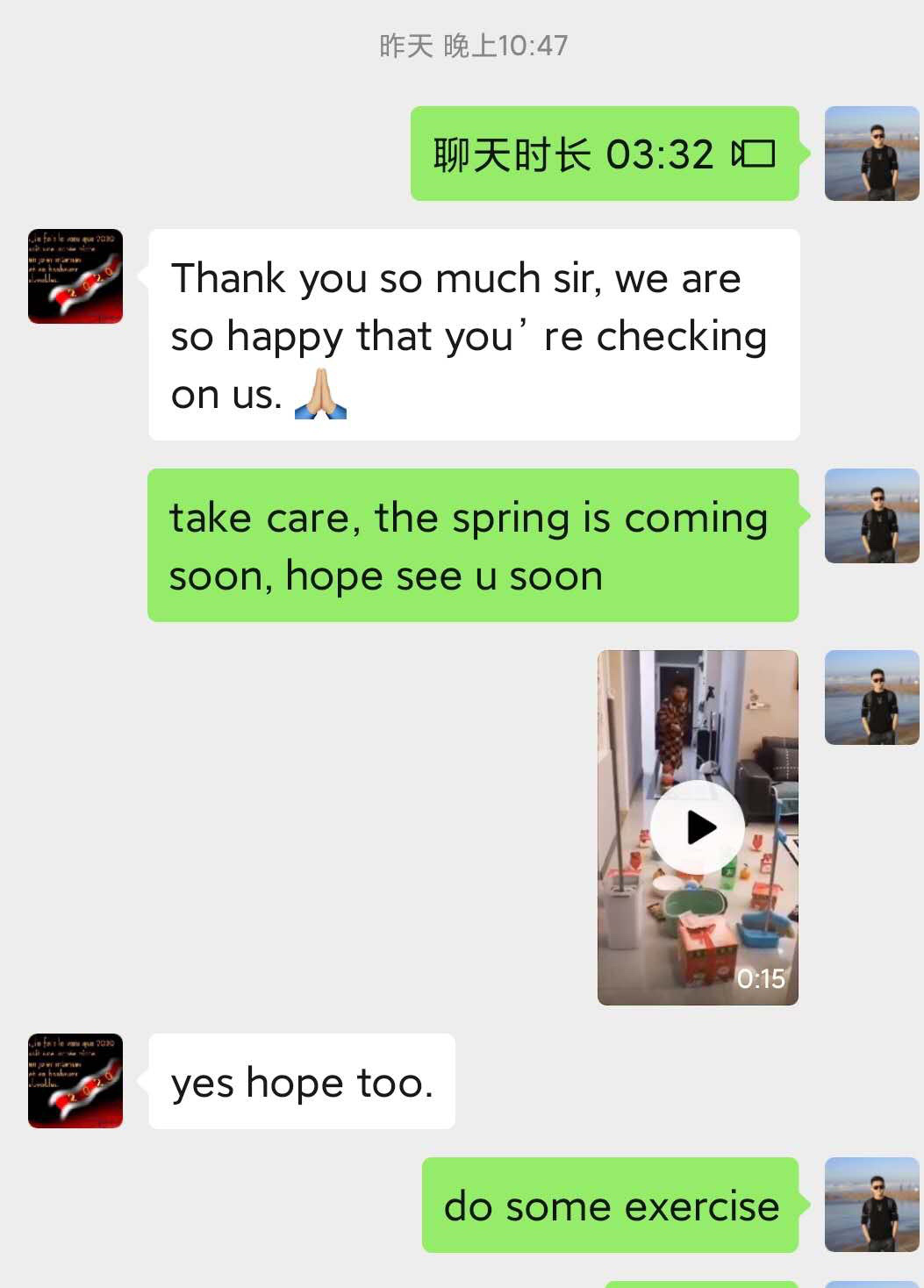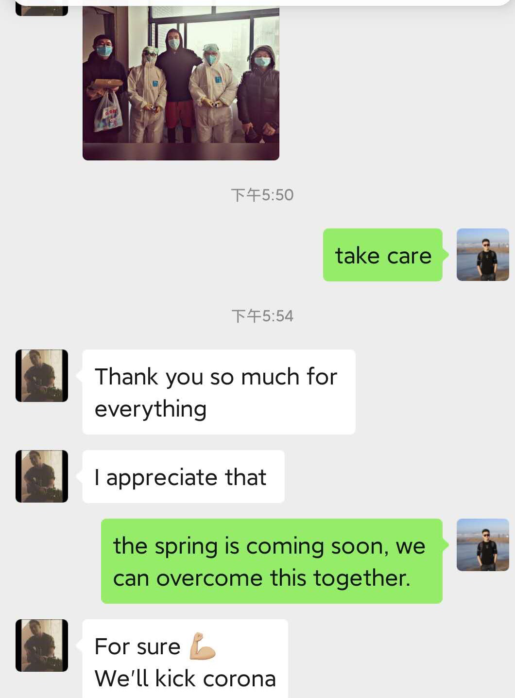 每时每刻不断变化的疫情,每天发布的留学生动态数据,每条及时回复的微信短信,每份紧缺珍贵的物资,都饱含着学校和402cc永利老师对留学生们深切的关爱。看到夜以继日奋战的医务人员、不辞辛劳的各战线工作者、和送温暖的老师们,留学生们都对中国和中国人民战胜疫情充满信心。他们一起为中国祈祷,加油中国,我们和你在一起!