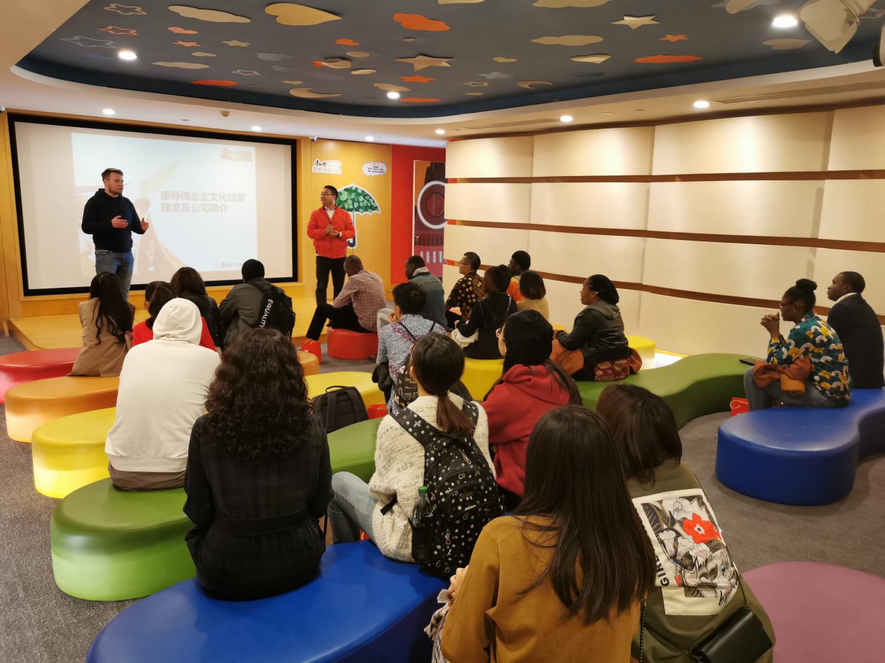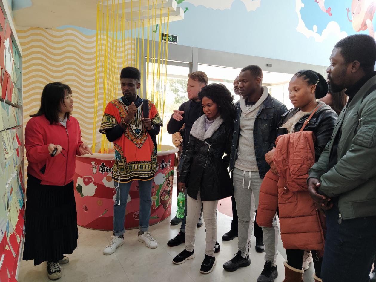 返回康师傅厨房,留学生们品尝了康师傅的新产品。最后,大家倾听了企业负责人有关企业管理、产品销售、品牌推广和国际市场开拓等经验的分享与介绍。留学生们兴致勃勃,热情地与之互动,并提出了自己的一些问题与想法,也都希望康师傅集团能够在自己的国家建立工厂。