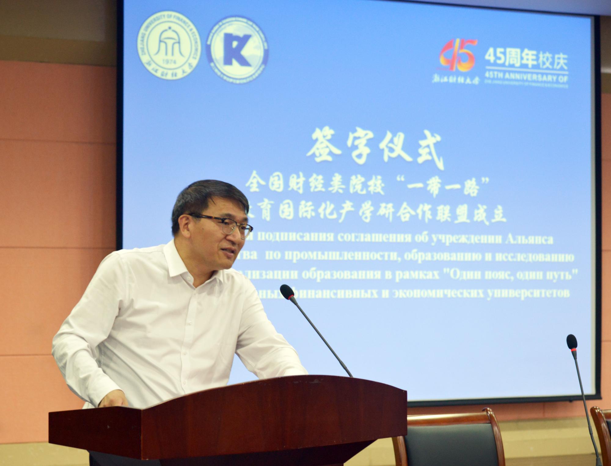 2019年10月19日,第二届中哈经济社会研究论坛暨全国财经院校“一带一路”教育国际化产学研合作联盟成立会议在402永利集团学术中心隆重召开。作为献礼校庆的学术活动之一,本次论坛的主题为“中哈经济社会合作:新时代的机遇和挑战”。来自哈萨克斯坦驻上海总领馆、浙江省社科联、哈萨克斯坦国立欧亚大学、中国社会科学院、中央财经大学、上海财经大学、江西财经大学、中央民族大学、兰州大学、北京外国语大学、西北大学等近40所高校的60多位研究机构的专家学者以及浙江国贸云商有限公司、浙江海盛影视文化集团、新疆三宝集团服务公司、北京唐风汉语教育科技有限公司等20余家企业负责人齐聚一堂,大家围绕论坛主题展开了热烈而深入的研讨。论坛由402cc永利院长、哈萨克斯坦经济社会研究中心主任余慕鸿教授主持。