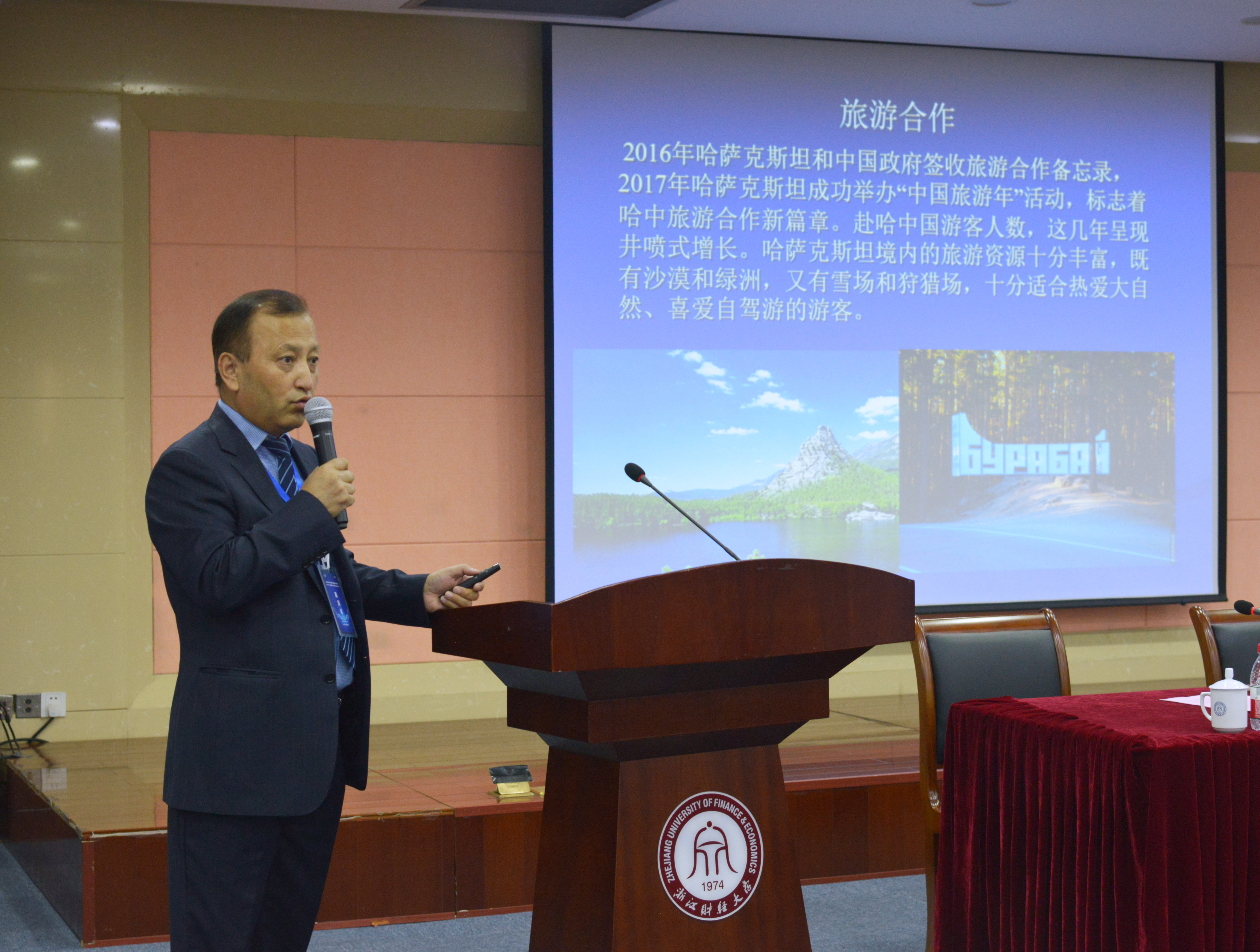 哈萨克斯坦国立欧亚大学赛肯·阿达依教授以“一带一路”框架下哈萨克斯坦与中国合作的潜力”为主题发表演讲。他说,哈萨克斯坦是丝绸之路经济带上的重要支点国家。近年来,中国不断推进“一带一路”倡议并积极与哈萨克斯坦“光明之路”战略对接,双方在经贸合作取得长足发展。他认为,中哈未来的合作大致可以在五个方面开展,分别为能源领域、制造业领域、经贸领域、农业领域、旅游领域。