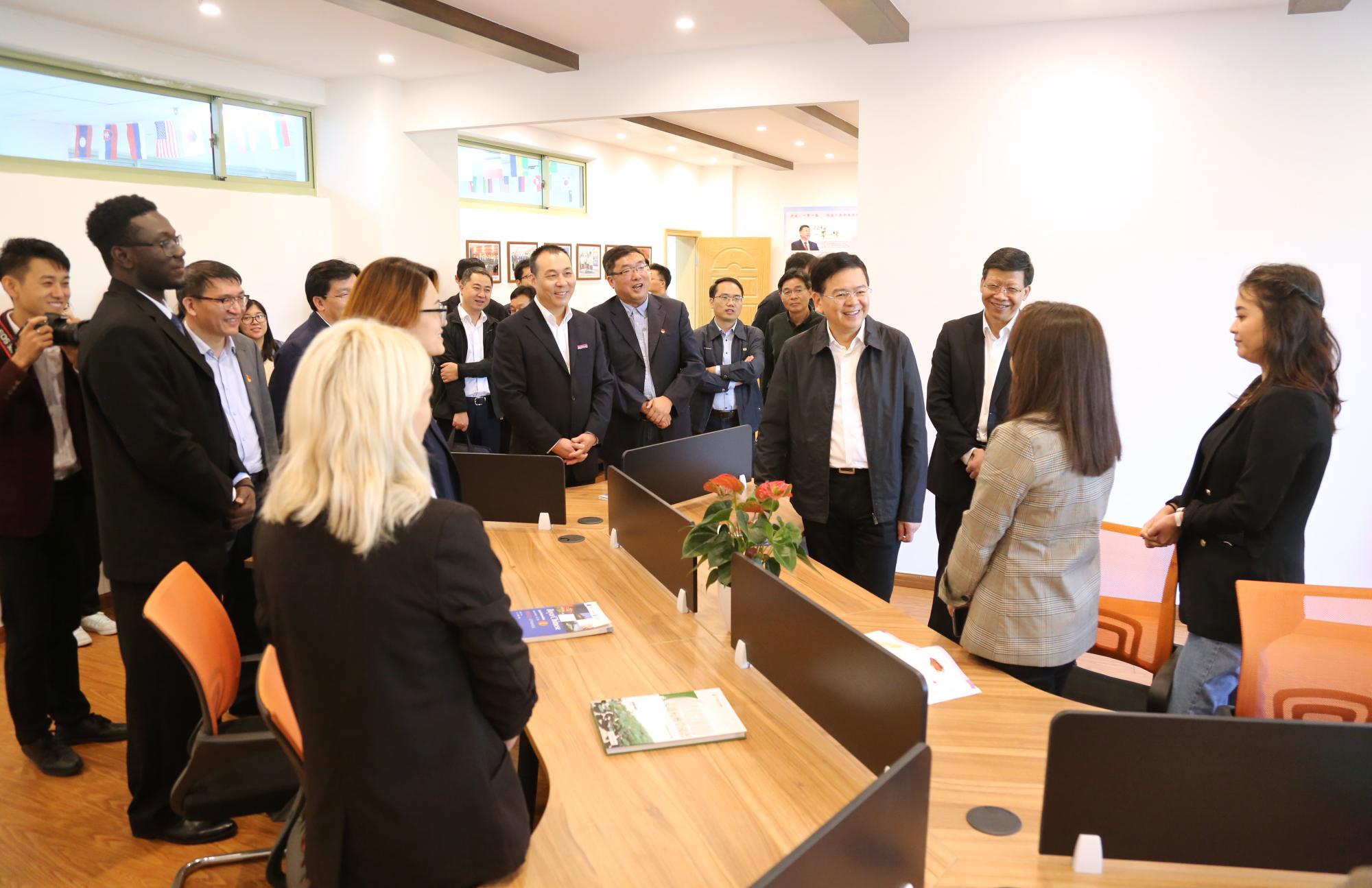 402cc永利院长余慕鸿向黄建发一行介绍了402cc永利的历史、发展现状和“不忘初心、牢记使命”主题教育的开展情况,并带领他们参观了哈萨克斯坦经济社会研究中心,并介绍了该中心成立以来开展的合作项目、科研活动和取得的成果。