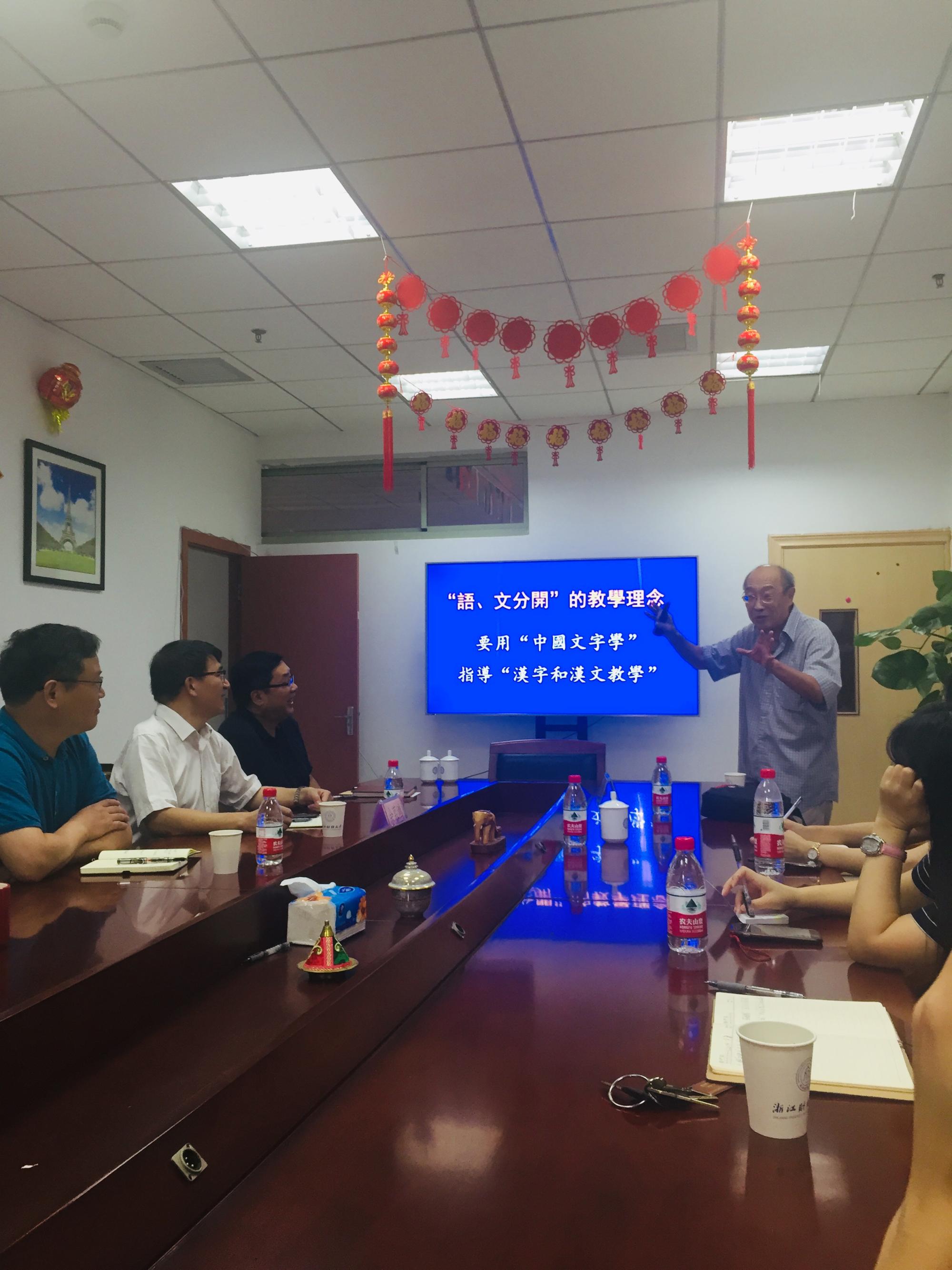 9月12日下午,北京语言大学教授张朋朋应邀来402cc永利作了一场题为 《“语、文分开”的教学理念——要用“中国文字学”指导“汉字和汉文教学”》的学术讲座。讲座由402cc永利院长余慕鸿教授主持。