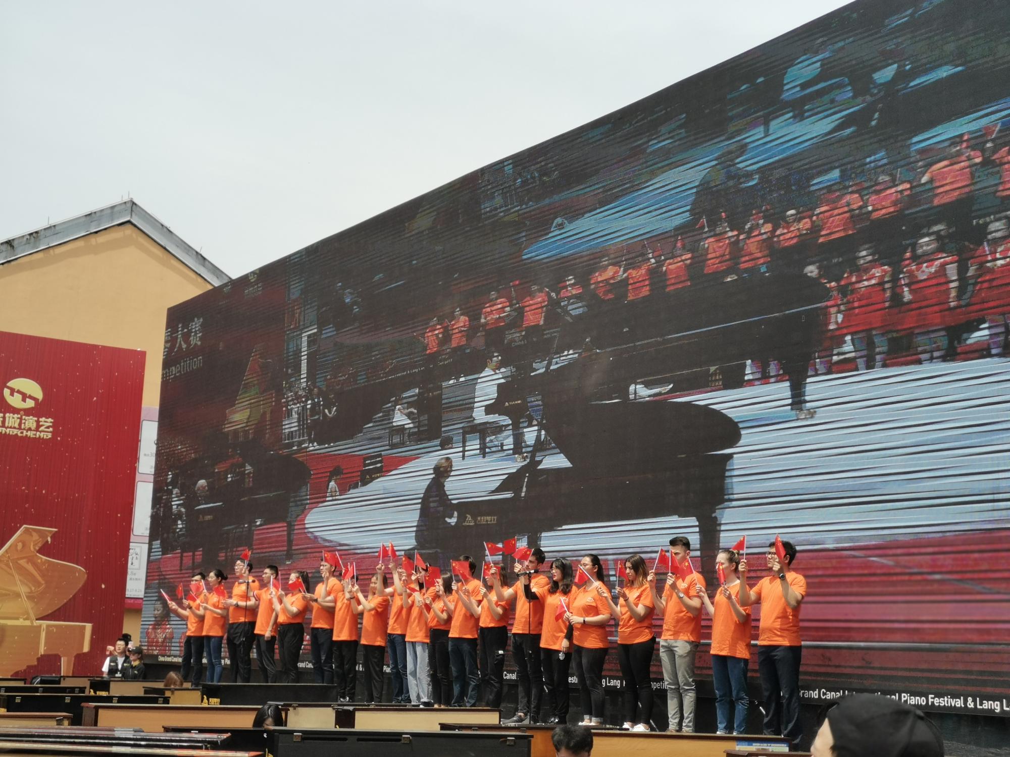 5月5日上午,由中共浙江省委宣传部、浙江省文化旅游厅、杭州市人民政府、浙江省文化产业促进会共同举办的2019中国大运河国际钢琴艺术节暨“郎朗杯”钢琴大赛在杭州市拱墅区运河天地广场开幕,我校留学生受邀参加了此次活动。开幕式活动围绕打造“国之大运”运河品牌,以迎接新中国成立70周年为主题,70架钢琴70名钢琴演奏者,通过高雅的钢琴艺术共同奏响“我和我的祖国共奋进”主旋律,开启本次大运河国际钢琴艺术节主体活动。
