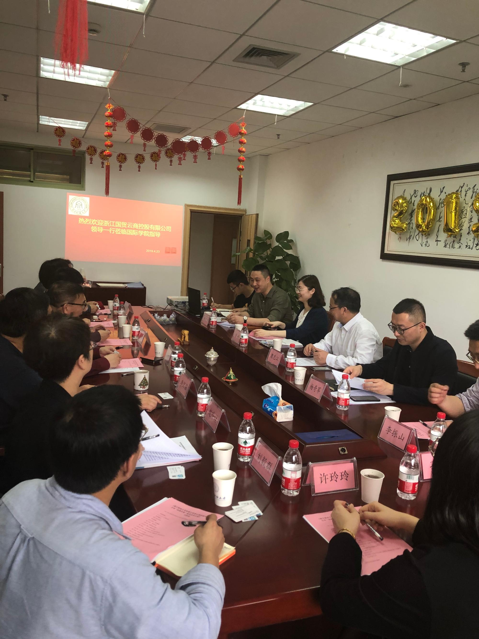 402cc永利余慕鸿院长向与会嘉宾介绍了学校发展历程、学科建设、专业设置、图书馆资源和国际化人才培养等情况,特别是我校留学生教育发展与培养特色;并对未来与浙江国贸云商控股有限公司的全方位合作表示期待。浙江国贸云商控股有限公司董事长濮志江详细介绍了浙江国贸云商控股有限公司的有关情况,展望了校企合作的发展愿景,并与在场的老师就相关话题展开了讨论。