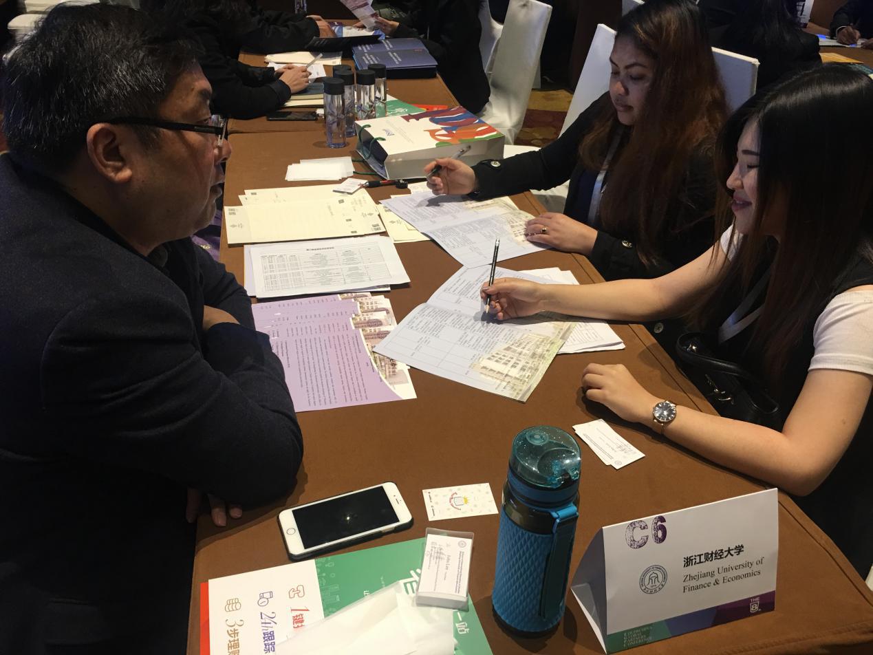 会议期间,我院与国际代理机构代表、海外院校代表进行了24场一对一的招生面谈,发放402cc永利招生宣传手册一百余份,与国际代理商就奖学金设置、专业设置、学科优势和培养模式等问题进行了详细的介绍和洽谈。同时也就国际代理商关心的学费收取、住宿标准和合作模式等问题进行了重点解答。