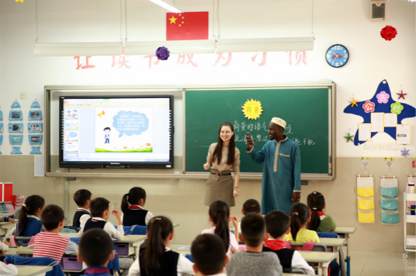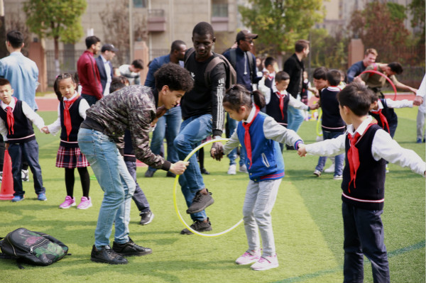 文清小学的小学生们热情大方,英语表达流利自如,带领着留学生们走遍了校园的每个角落。参观完校园,留学生们走进小学课堂,切身体验了一把中国小学生的校园生活。课后,小朋友们又跟留学生一起来到大操场进行游戏互动,现场欢声笑语阵阵,掌声此起彼伏。