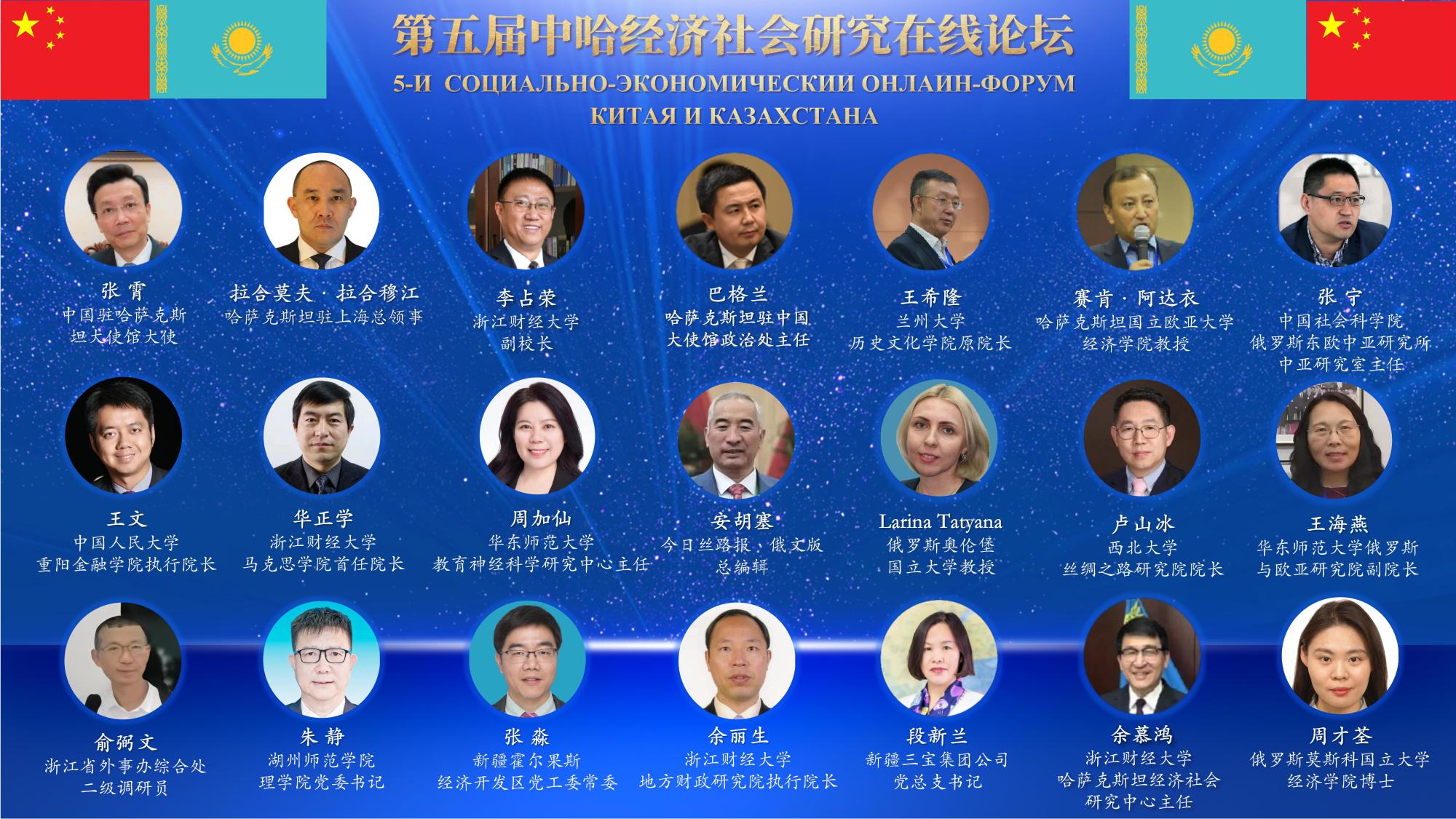 来自中国驻哈萨克斯坦大使馆、哈萨克斯坦驻中国大使馆和上海总领事馆、哈萨克斯坦国立欧亚大学、俄罗斯莫斯科国立大学和奥伦堡国立大学、中国社会科学院、中国人民大学、华东师范大学、西北大学、402永利集团、湖州师范学院、浙江省人民政府外事办公室、中国新闻社新疆分社/丝路新观察全媒体、新疆霍尔果斯经济开发区、新疆三宝实业集团有限公司的近20名专家、企业家汇聚云端,围绕论坛主题展开了广泛而深入的研讨。参加本次在线论坛的还有来自来自哈萨克斯坦阿斯塔纳国际金融中心、哈萨克斯坦YouChina公司、哈萨克斯坦国立欧亚大学、俄罗斯国立莫斯科大学、上海政法学院上海合作组织基地、中国民族翻译局、中国人民大学、中国社会科学院、兰州大学、中央财大、上海财大、华东师大、西北大学、上海外国语大学、西安外国语大学、大连外国语大学、解放军信息工程大学、402永利集团、湖州师范学院、浙江树人学院等10多所大学以及新疆维吾尔自治区政府中亚研究中心、中国新闻社新疆分社、浙江省外办、浙江长三角研究院国际人才中心、新疆霍尔果斯市科技局、浙江交工集团国际公司、新疆三宝集团公司、杭州姆珉网络科技有限公司等相关单位的嘉宾。会议在腾讯会议平台上全程直播。