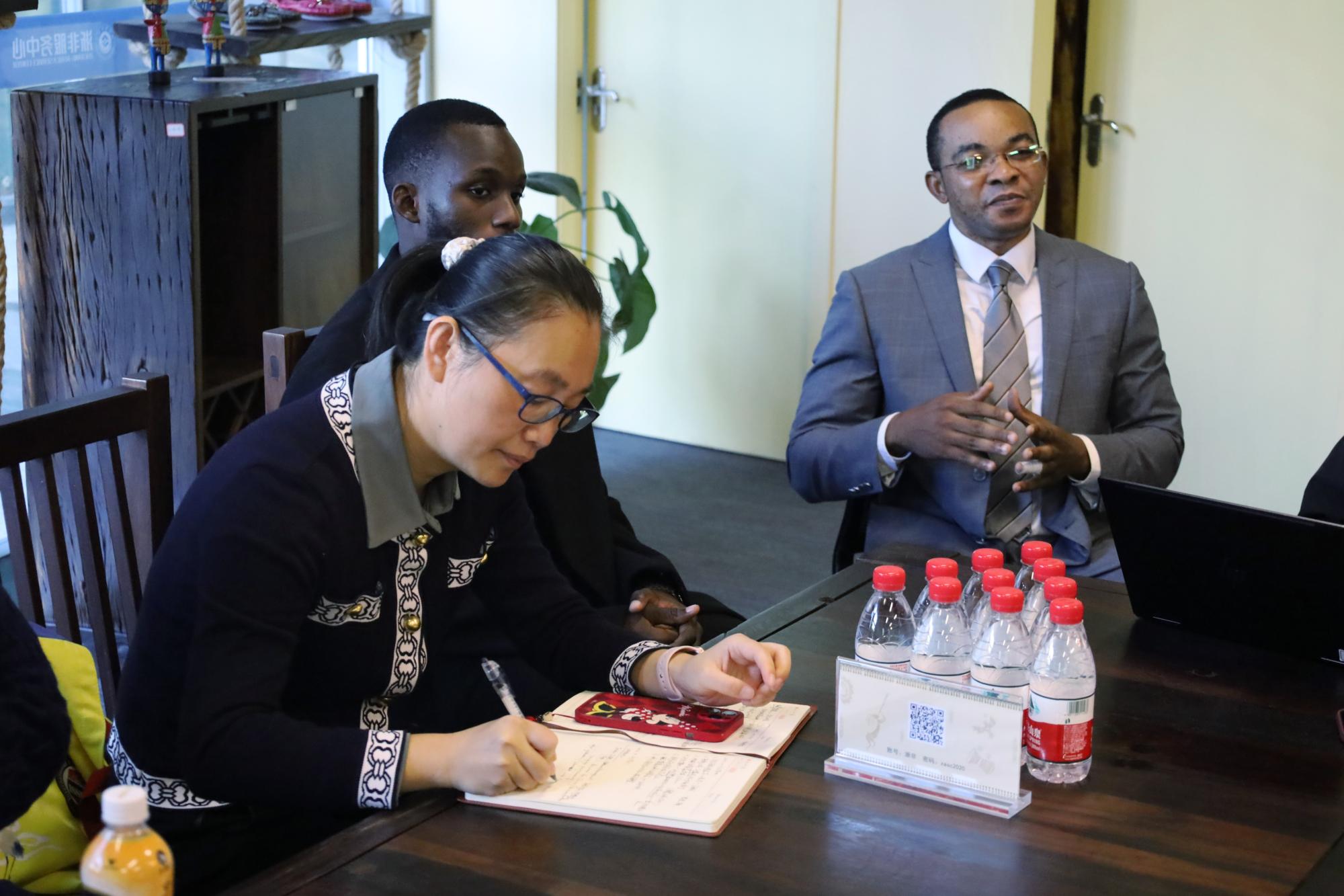 在相关负责人的带领下,大家首先了解了中心的发展概况,并参观了中心的展厅。展厅内非洲特色手绘布、非洲特色木雕、非洲艺术文化瑰宝祖鲁篮子等精湛的工艺品,让大家近距离感受了非洲文化的魅力。