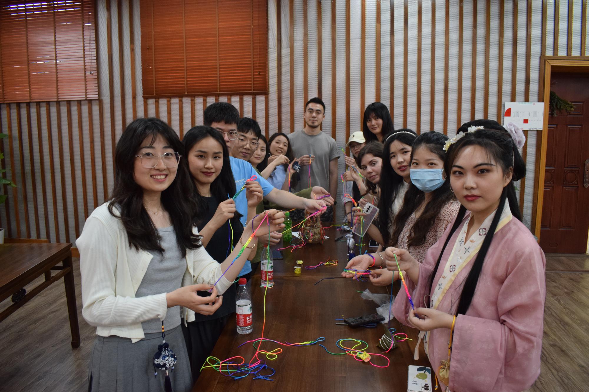制作香囊时,留学生们通过研究生的简要介绍,了解了不同香料的效用以及佩戴香囊可以避邪驱瘟、点缀衣襟的作用,最后都亲手制作出属于自己的香囊。编制五彩绳的环节更是趣味横生。小小的五彩绳蕴含着祈福纳吉、躲灾避祸、驱邪避毒等多种美好寓意,让留学生们不断感叹中华文化的丰富多彩。