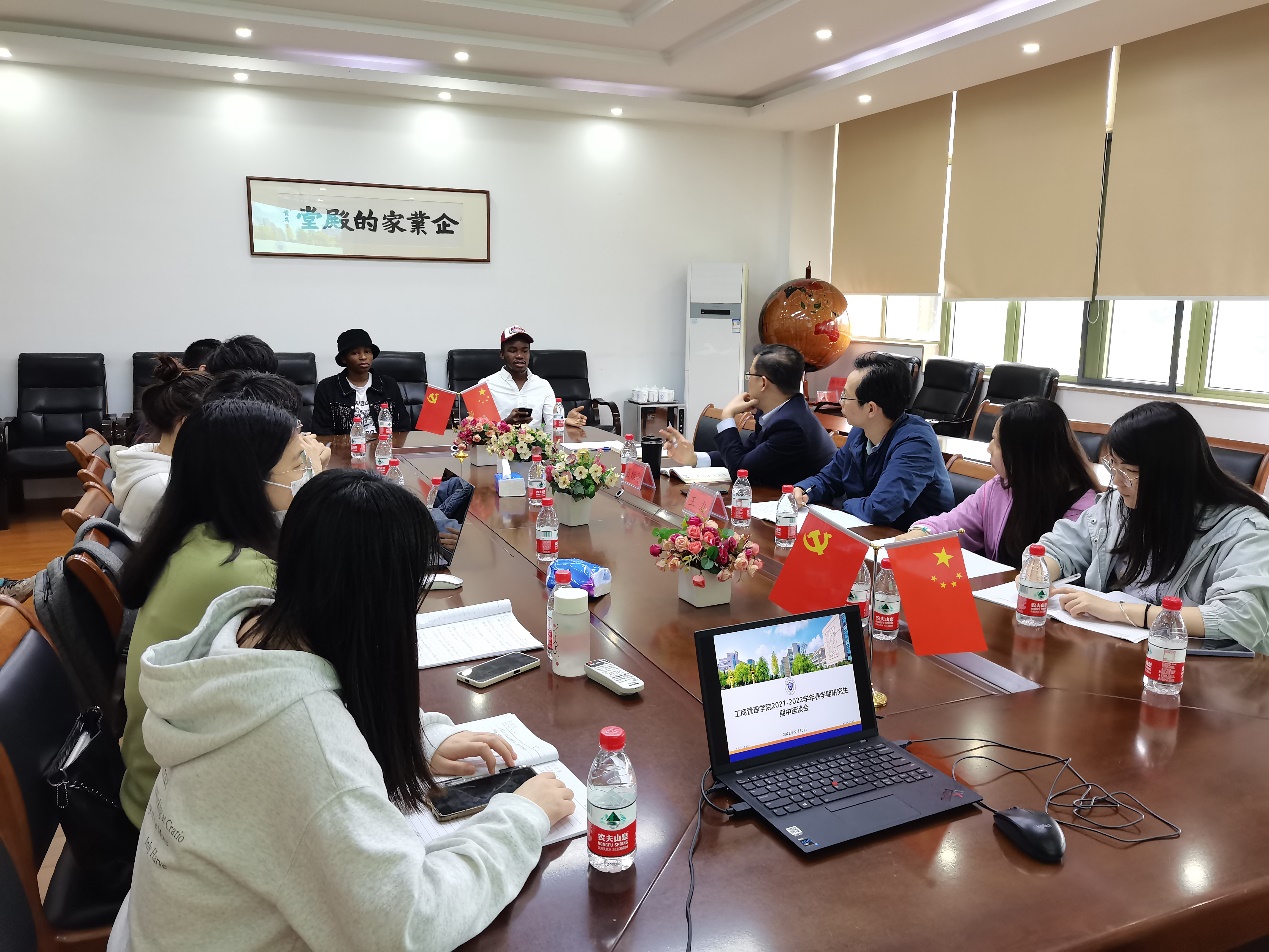 戴维奇副院长首先向此次参会的国内研究生代表以及来自尼日利亚和津巴布韦的两位留学生代表DZENGERERE EUNICE CHIDOCHASHE、UGWU KIZITO ODINAKA表达了真挚的问候,并指出本次座谈会是工商管理学院组织的首次国内、国际研究生共同参与的座谈会,目的是广泛听取国内外研究生对课程教学、科学研究和学术活动等方面的意见和建议,进一步推动来华留学生与中国学生教学、管理和服务趋同化,提升国内外研究生项目培养质量。