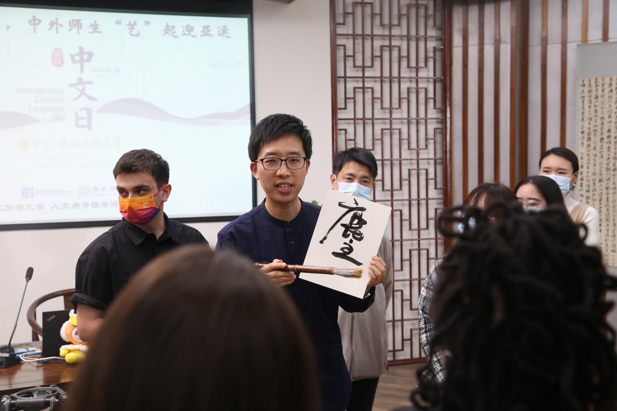 4月20日是第十三个联合国中文日,为迎接国际中文日,4月19日下午,我院部分国际学生参与了“品味汉字之美,中外师生‘艺’起迎亚运”活动,在人文学院问津书院与中外师生一起品味汉字之美。