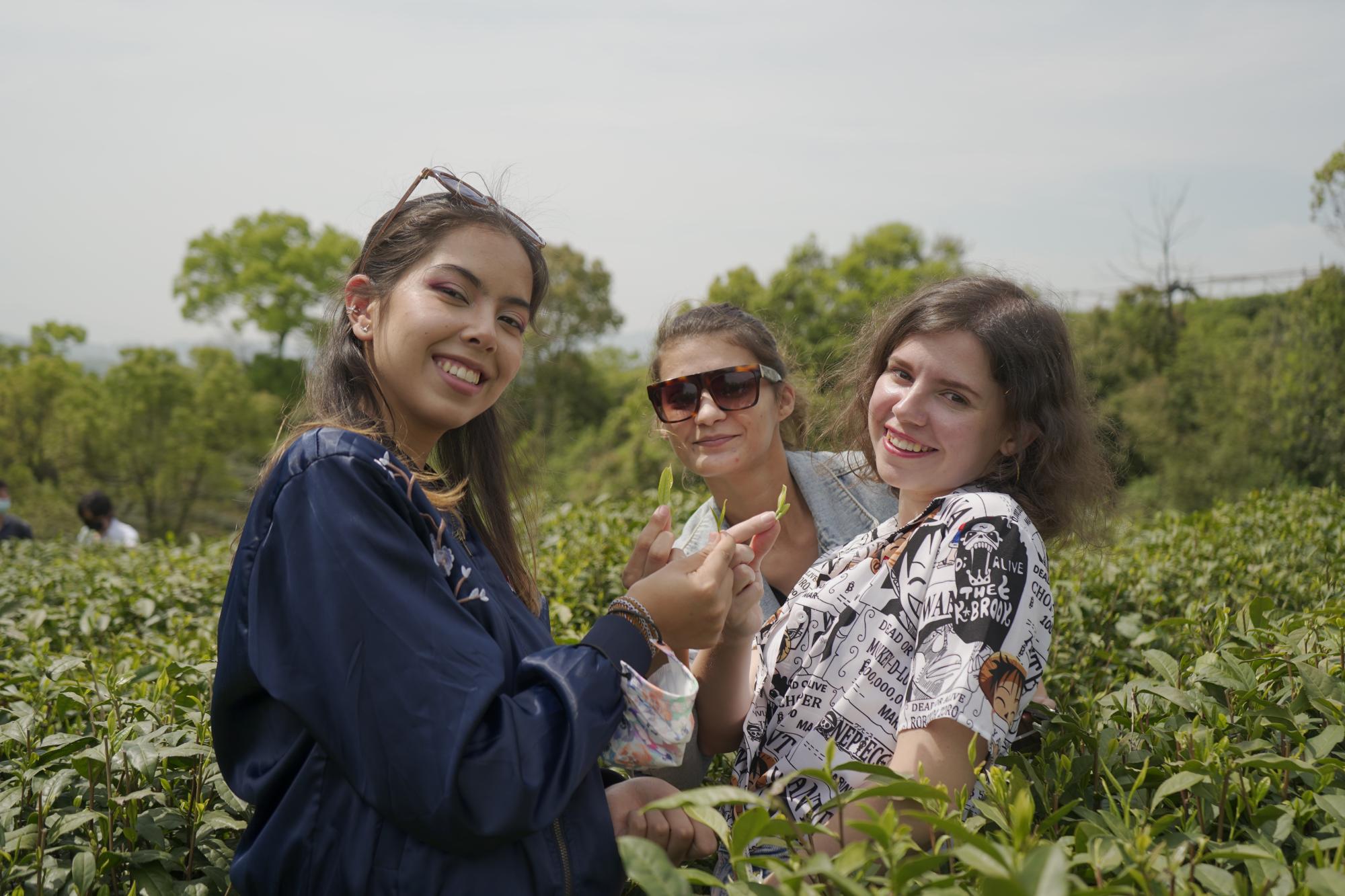 4月10日,402永利集团葭萌茶艺社携中外学生前往外桐坞村茶园学习采茶、制茶知识,带领大家走进中国茶的世界。以中国茶,会四方友。
