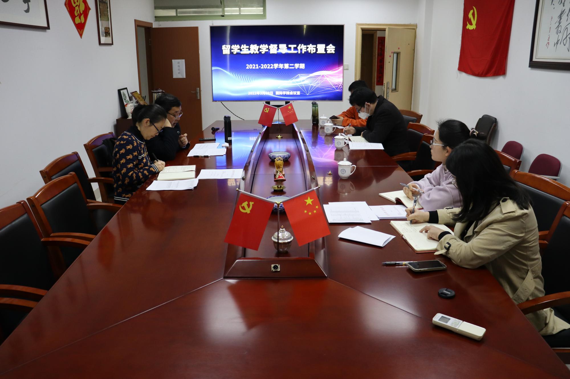 2022年3月29日下午,我院在E103会议室召开了2021-2022学年第二学期留学生教学督导工作布置会议。402cc永利副院长赵倩、留学生教学督导组组长李汉强、督导组成员吴宏、陈淑莹、许光等出席了此次会议。