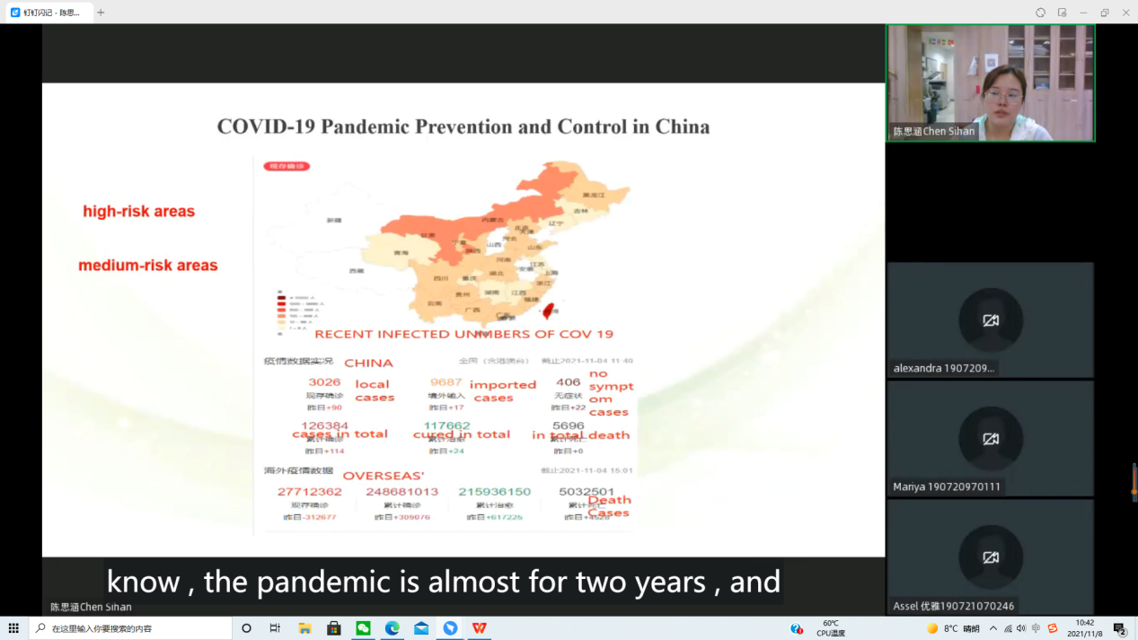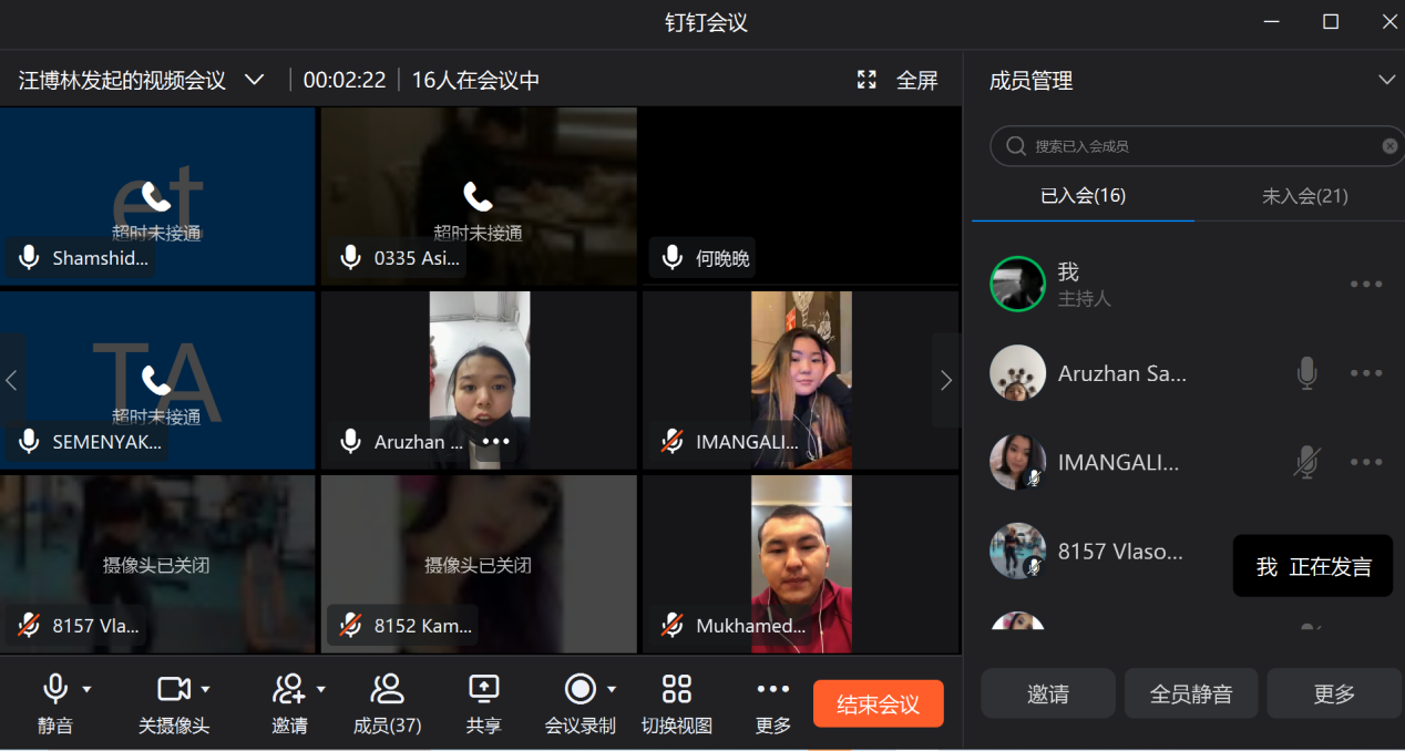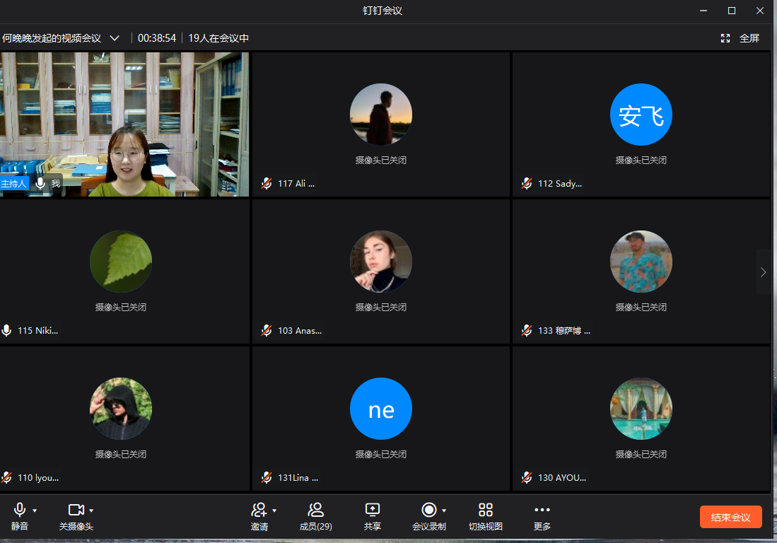 首先,对于学生关心或困惑的问题,如毕业的学分要求、优秀奖学金的评选、学校的返校安排、以及线上课程的要求等等,各级辅导员在班会上给出了详细的解答。辅导员们还详细地介绍了本学期的学生活动,呼吁因为疫情无法返校的同学积极参与。班会的最后,各级辅导员向留学生介绍了目前中国和世界各地新冠疫情的总体情况,再次提醒大家,疫情尚未结束,防控不可大意。向同学们着重强调,做好个人防护,保护自身安全。对于在校的留学生,提醒他们遵守学校疫情防控的有关规定,做到“非必要不离杭,不聚集”,确有离杭需求,一定要提前告知辅导员并在钉钉上申请外出审批。