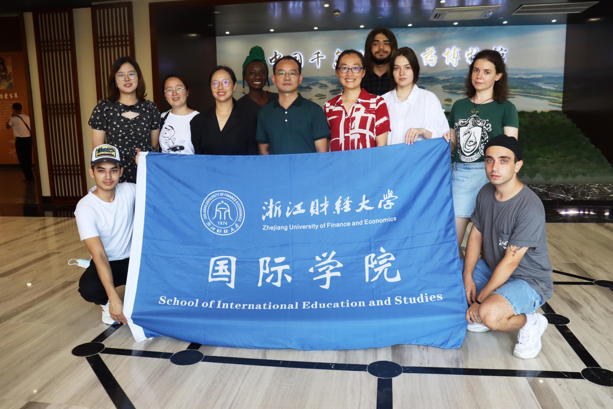 美丽乡村建设的推进离不开当地的优秀传统文化,中医药文化是淳安县临岐镇的一大特色。秉持着知行合一、以行求知的精神,402cc永利的师生们走进“百草临岐润养小镇”,追寻中医药的文化脉络,全方位感受中医药的神奇魅力。在临岐镇工作人员的带领下,师生们先后参观了中国•千岛湖中医药博物馆、龙兴超人•中医药文化街、中药材交易市场和国潮•互联网润养体验中心。在中医药博物馆里,大家了解了中医的发展历史、理论基础、名医名家、经典药方等内容;在中医药文化街和中药材交易市场中,师生们先后品尝了具有保健功效的灵芝孢子粉和花草茶。当地的工作人员还向大家讲述了临岐镇烫伤神药的故事,留学生听后觉得十分神奇,纷纷表示想把中医药带回自己的国家。一行人还来到了临岐镇初级中学,与当地的中学生们进行多元文化交流,鼓励小同学们努力学习,去看更广阔的世界。