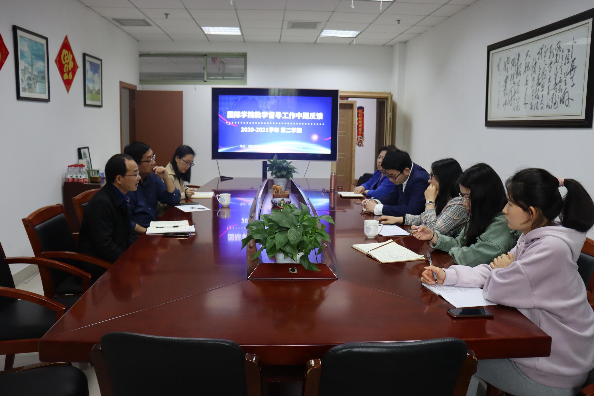 2021年4月27日上午,在402cc永利E103会议室举行了2020-2021学年第二学期402cc永利教学督导工作中期反馈会议。402cc永利副院长柴志贤、院长助理赵倩,教学督导组成员李汉强、沈渊、陈淑莹、许光老师等出席了会议。各位督导依次汇报了教学督查情况,肯定了本学期留学生教学工作有了显著进步,指出了个别教师在教学过程中存在的问题,并针对出现的问题提出了建设性的意见。留学生督导听课制度为提高留学生的课堂教学质量提供了有效保障。