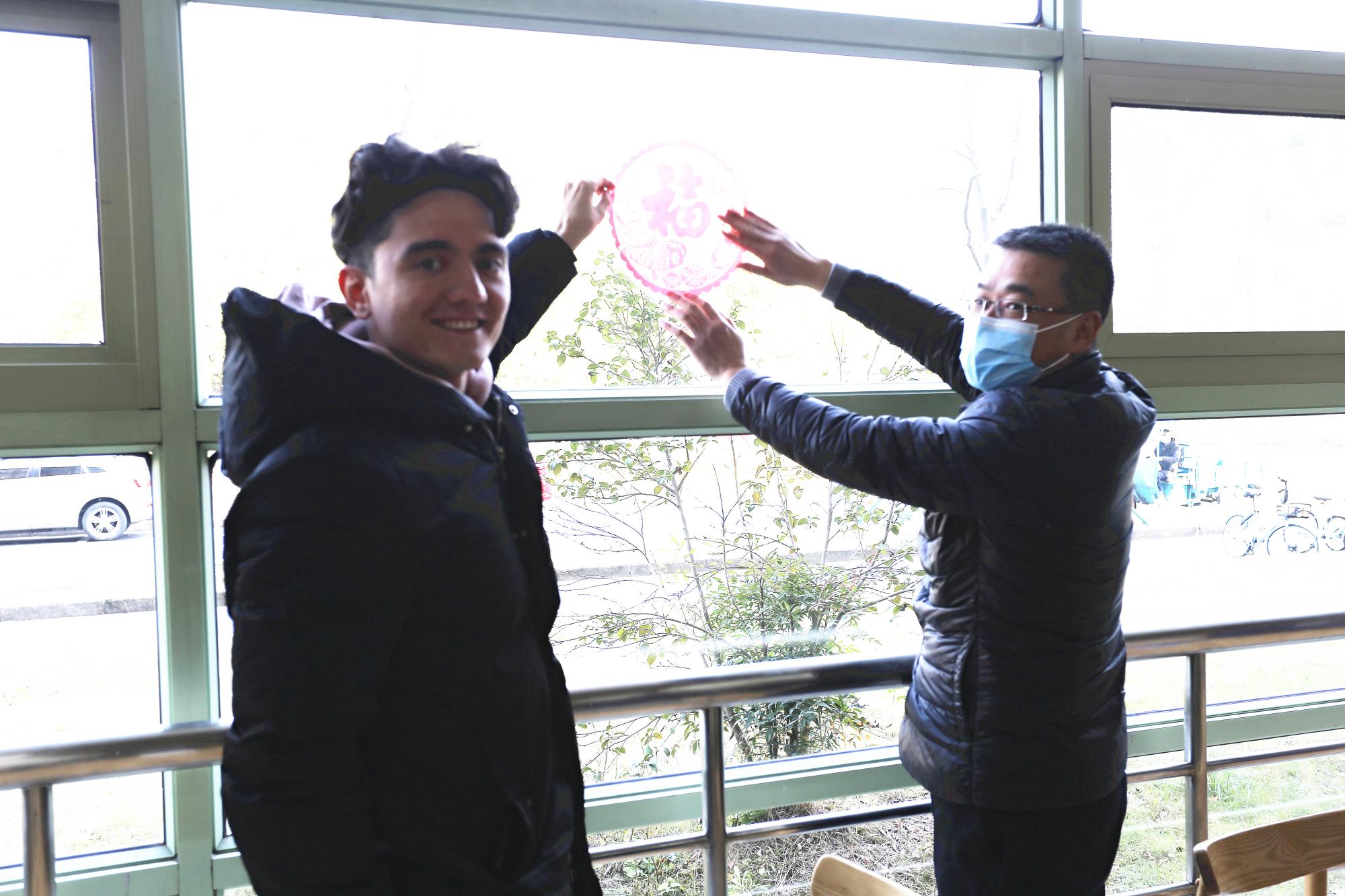 活动3:学校领导看望在校国际学生,“贴窗花、包饺子、共进团圆饭”
