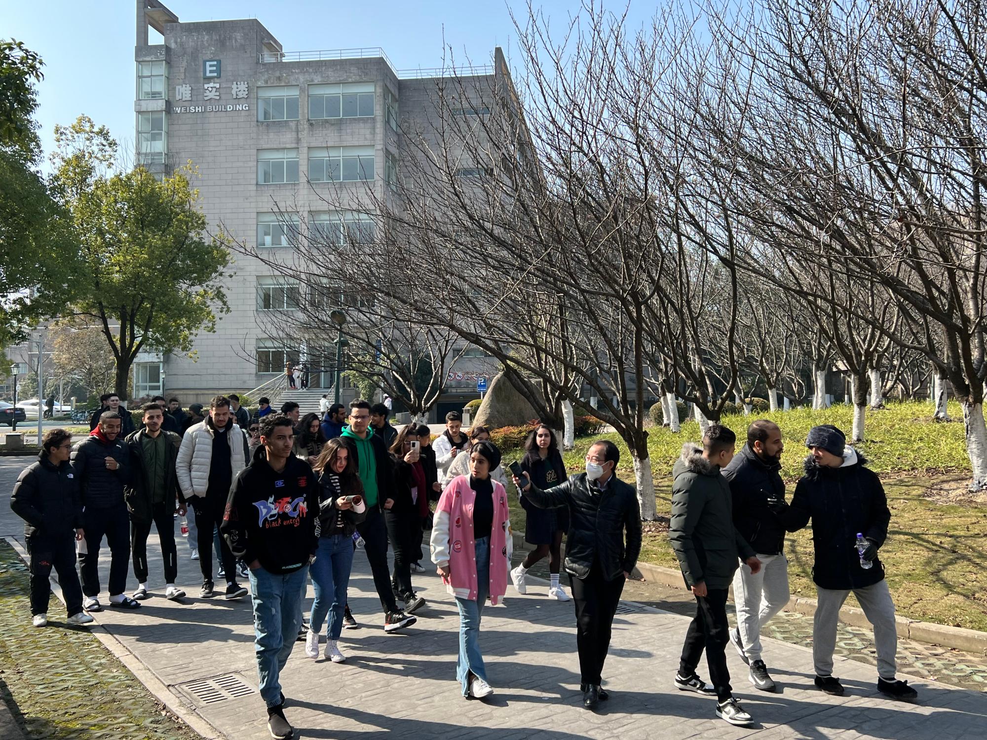 1月19日,校领导看望在校的留学生,与学生一起贴窗花、包饺子,共进团圆饭,为学生们送去了关爱和家庭的温馨。午后,阳光正暖,留学生们在402cc永利院长柴志贤的带领下漫步校园,师生一同游览欣赏着学校的人文风光。登高校友林时,同学们聆听并感悟着“十年树木、百年树人”的道理。驻足学涯湖畔,不论是湖中嬉戏的大鹅,还是丰富多姿的校园风光都让同学们回味无穷。