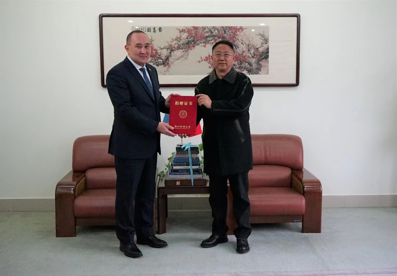 参观期间,拉合莫夫·拉合穆江总领事向研究中心赠送了一批图书资料,研究中心也向客人回赠了中亚经济社会研究动态的研究资料。