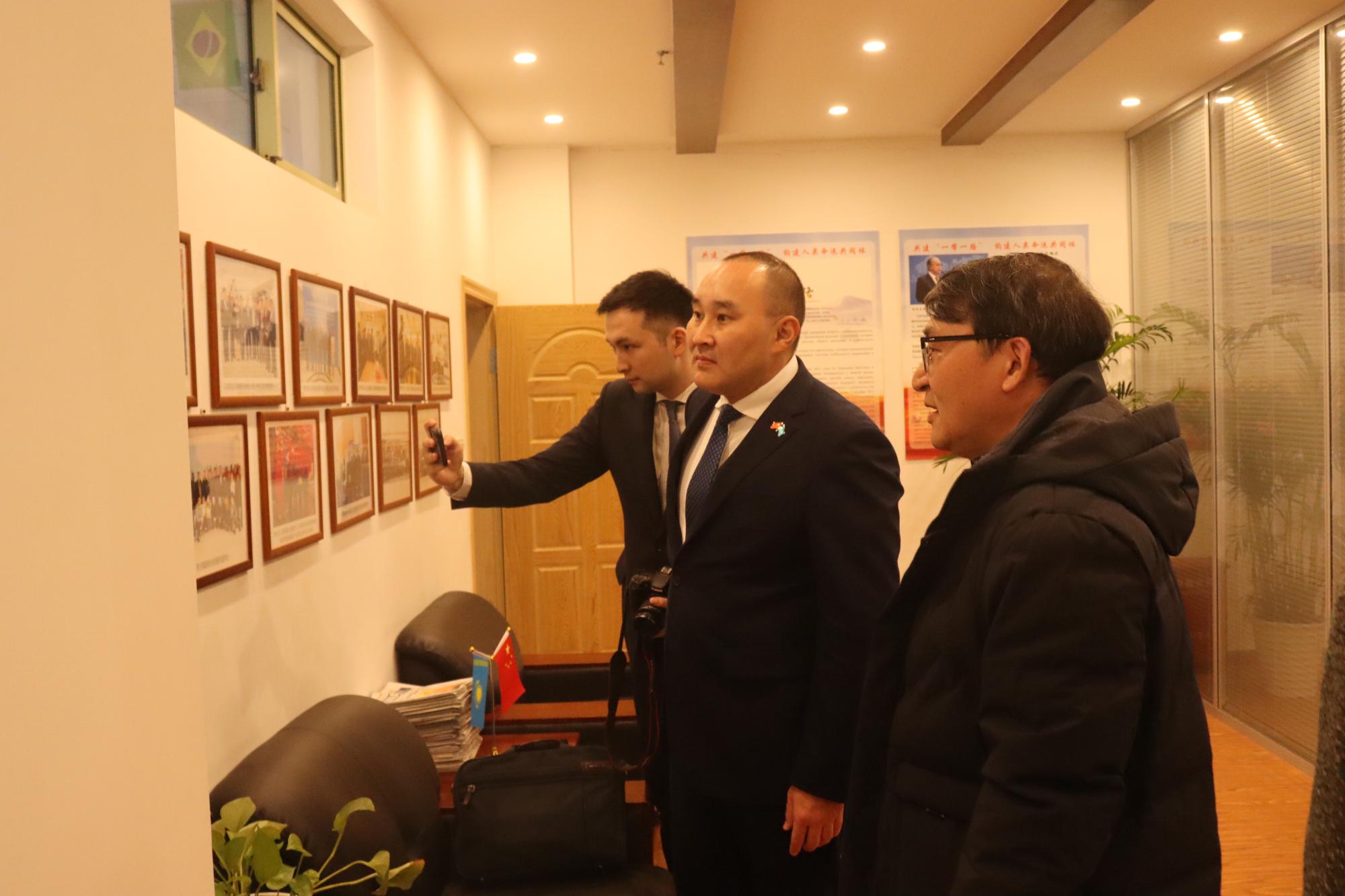 随后,拉合莫夫·拉合穆江总领事一行参观了我校402cc永利和哈萨克斯坦经济社会研究中心。余慕鸿主任和柴志贤院长分别向拉合莫夫·拉合穆江总领事一行介绍了该中心所取得的对哈研究成果、在研项目、中哈经济社会研究论坛以及402cc永利对包括哈萨克斯坦在内的国际学生的培养成效、教育教学特色等。拉合莫夫· 拉合穆江总领事对哈萨克斯坦研究中心和402cc永利为哈萨克斯坦研究、哈中人才培养等方面所作的积极努力和显著成绩致以衷心谢意,给予高度评价,希望双方继续在中哈经济社会研究论坛的嘉宾参与、跨境电子商务、企业家培训等进一步加强合作,为哈中关系进入下一个“黄金30年”作出新的贡献。
