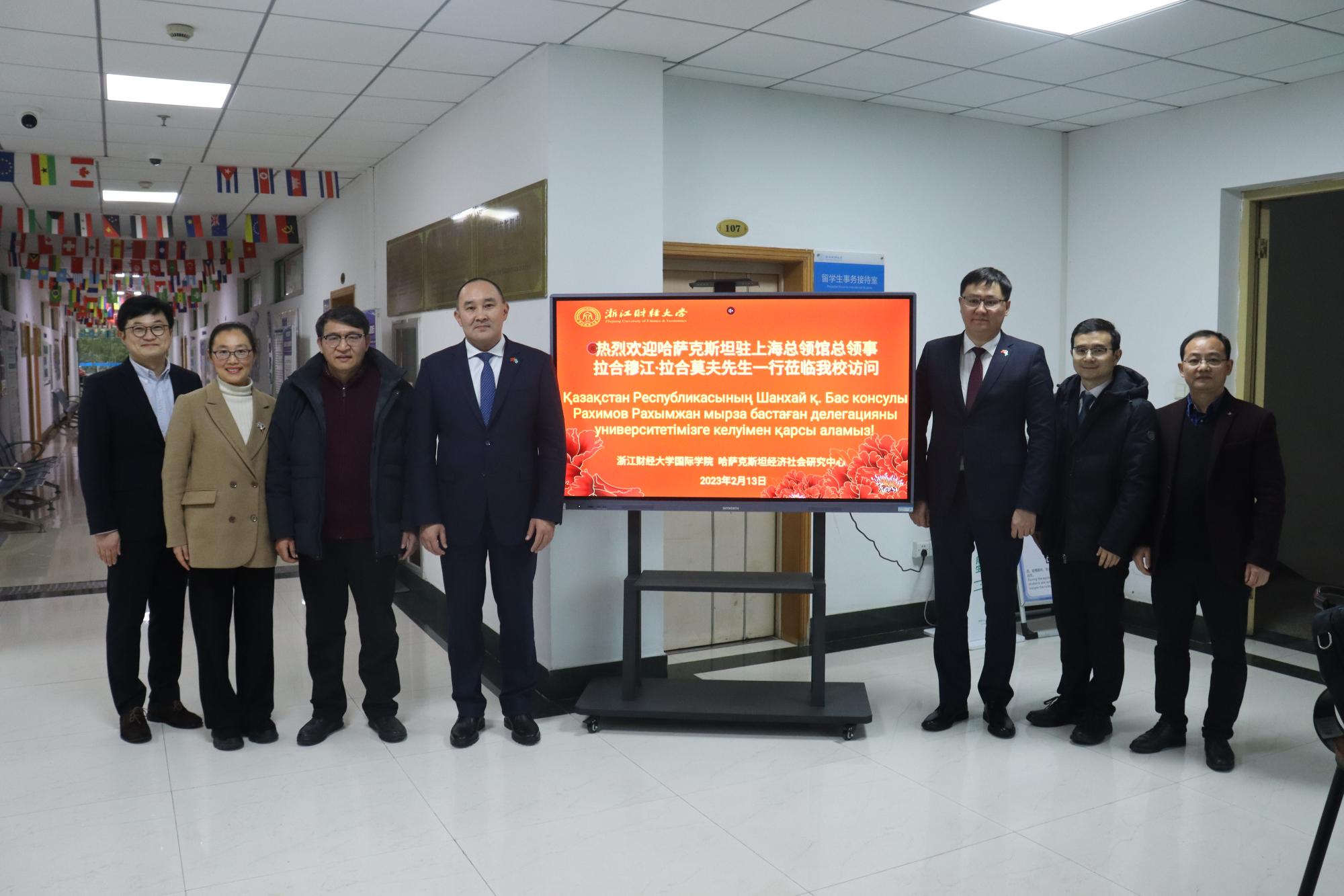 李占荣副校长介绍了学校近年来在对哈教育合作、留学生培养和学术研究方面取得的丰硕成果。他表示,学校愿与哈萨克斯坦驻上海总领事馆深化务实合作,加快后疫情阶段的高质量教育交流,进一步拓展在“商务+汉语”国际人才培养、中哈经济社会研究、社会服务和文化交流等方面的合作,为“一带一路”建设和推进构建人类命运共同体作出应有贡献。