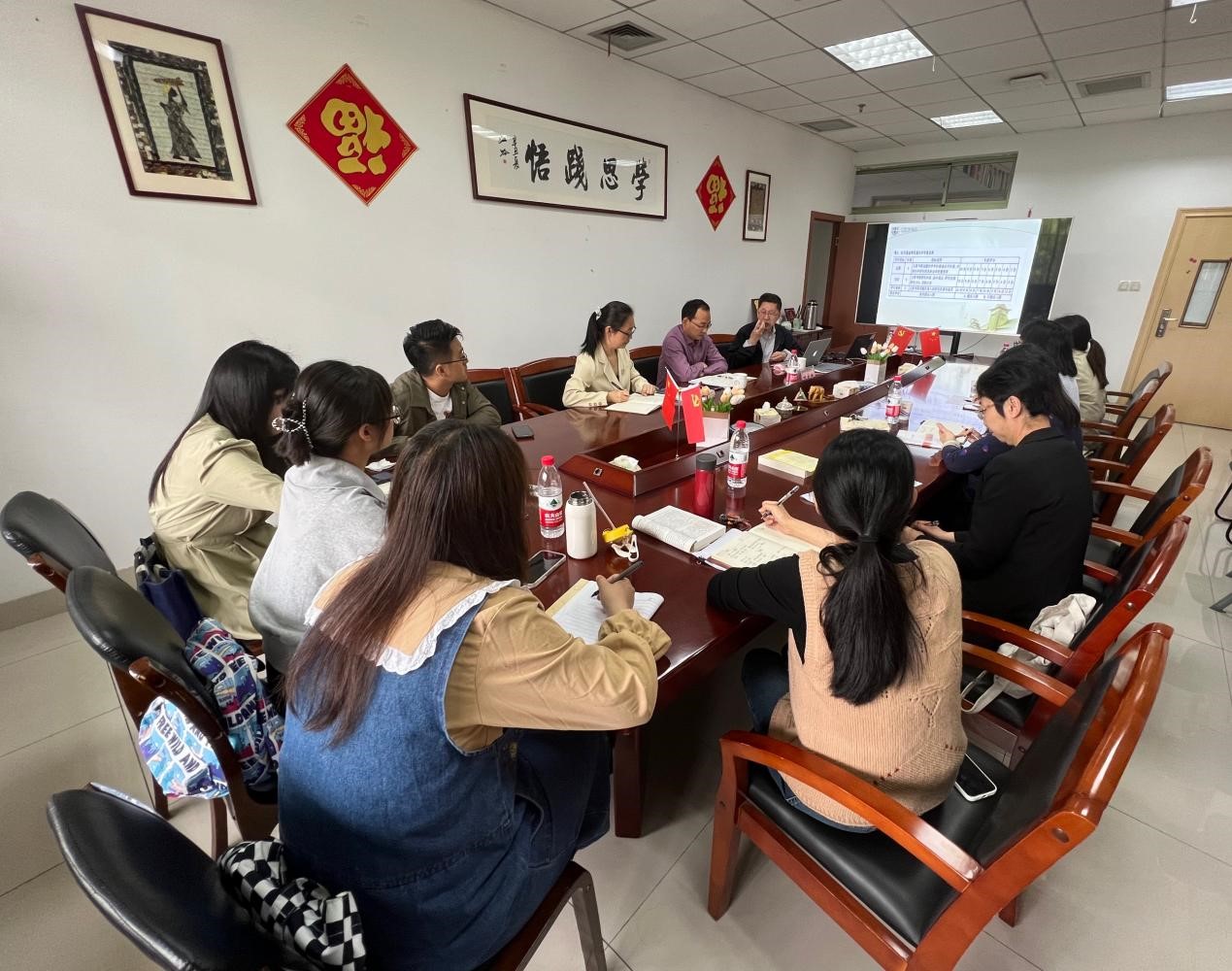 程爱民介绍了国际形势大变局下国际中文教育历史演进脉络、现状与演变趋势,深入剖析了国际中文教育学科与专业发展内在逻辑,并从高度学科交叉性、师资培养、教材编写与资源建设等方面,提出了国际中文教育的现实路径与发展策略。程爱民还就来华留学生管理研究提出了宝贵的指导建议,指出需要基于问题导向开展研究,不管改进管理模式与管理策略。报告最后,程爱民教授与师生进行了深入的探讨与交流。