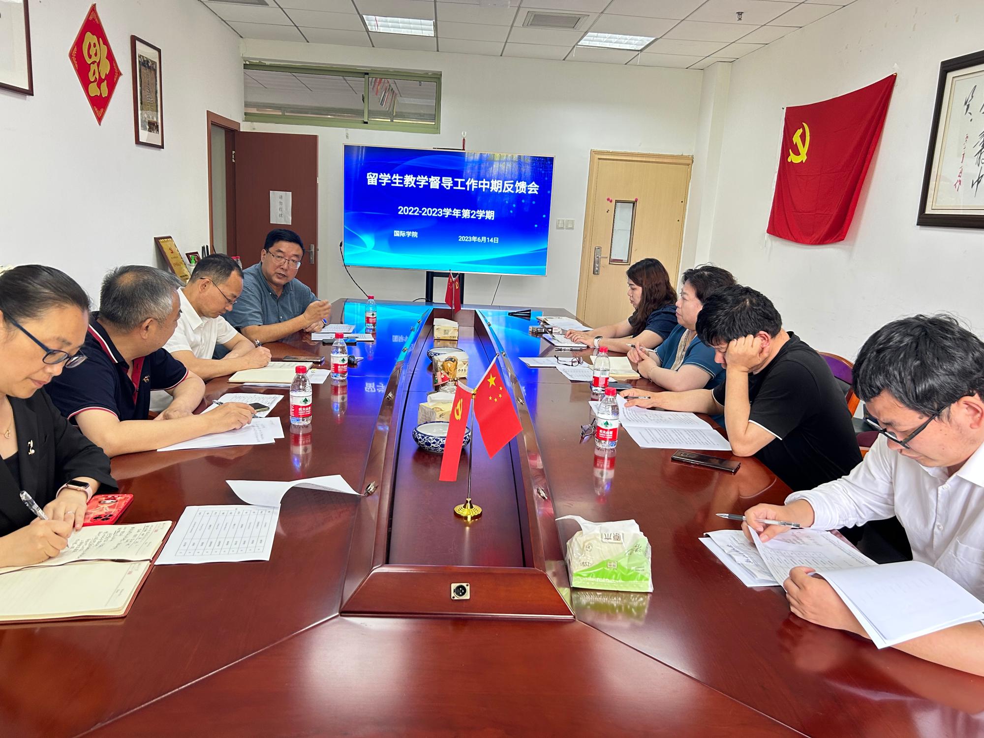 6月14日,学院召开了2022-2023学年第2学期留学生教学督导工作反馈会。校督导委主任崔大树、留学生督导组全体成员、402cc永利领导出席了本次会议。