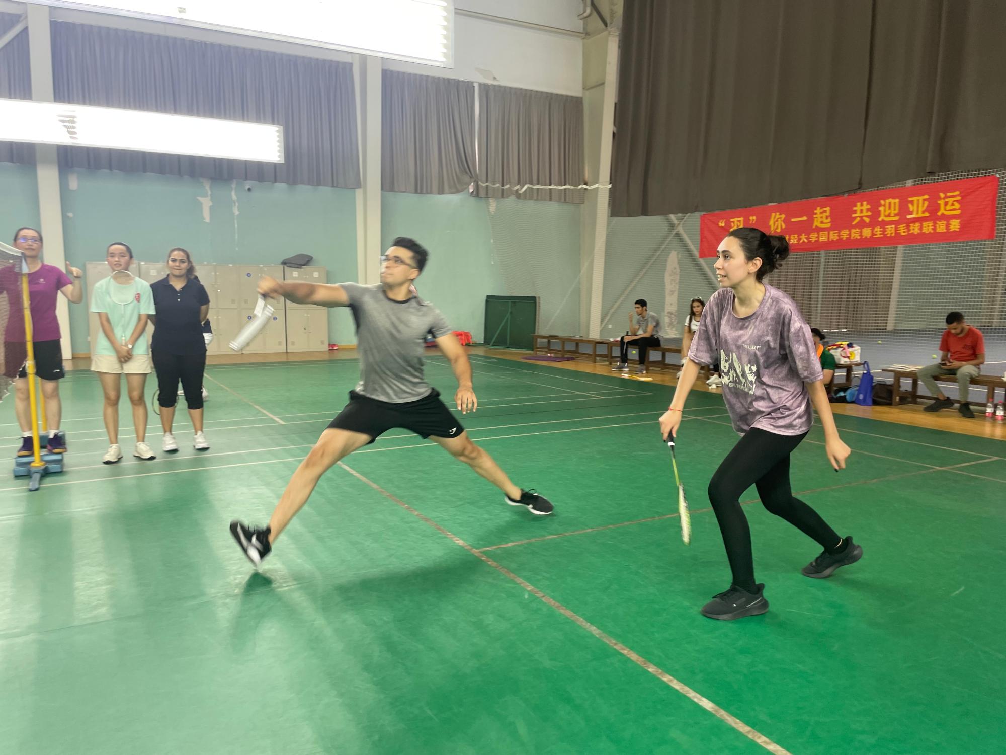 为迎接即将到来的亚运盛会,丰富国际学生的暑期生活,倡导积极向上的健康生活方式,7月14日下午,“羽”与一起,共迎亚运402cc永利师生羽毛球联谊赛在学校北体育馆举行。