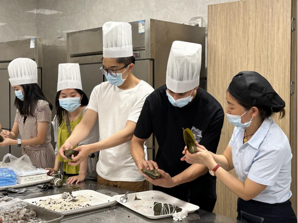 6月20日下午,为让留学生体验劳动的快乐、分享劳动的果实、感受浓浓的端午节日氛围,我院联合后勤服务中心开展留学生端午传统文化体验活动。留学生们跟着“中国师傅”学习包粽子,体验中国传统文化,共庆端午佳节的来临。
