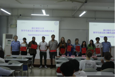 为帮助来华留学生更好地了解中国国情,特别是亚运期间,助力城市国际化水平的提升,现场还进行了402永利集团留学生国情教育基地授牌仪式和402永利集团留学生亚运语言翻译志愿者聘任仪式。