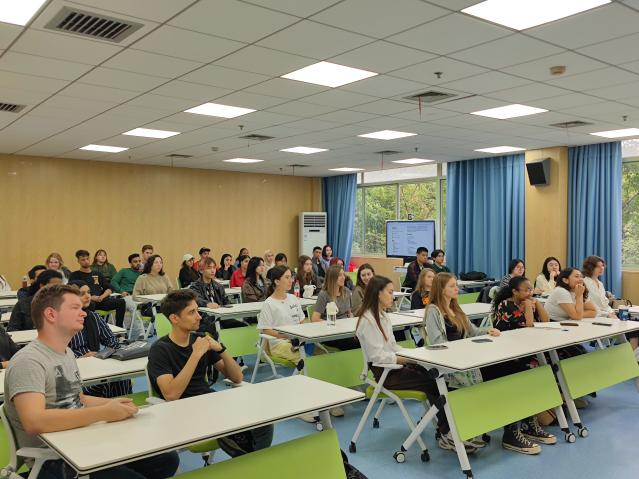 首先,402cc永利创新创业中心金德锋主任分享了我校优秀国际学生成功求职知名企业的案例,鼓励国际学生们结合自己的语言文化优势,积极寻找实习机会,以增强就业竞争力。随后围绕就业形势、简历制作、面试技巧、签证政策等内容,与在座的近50名国际学生展开互动交流,解答同学们关于实习就业的诸多疑惑。
