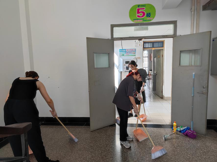 随后辅导员就宿舍管理规定、常见违规行为、宿舍报修指南等方面对全体宿舍助管进行了培训,明确了宿舍助管职责,进一步提升了宿舍管理团队的业务能力。会后,辅导员带领宿舍助管们拿着卫生工具,开展国际学生公寓大扫除,美化宿舍环境。
