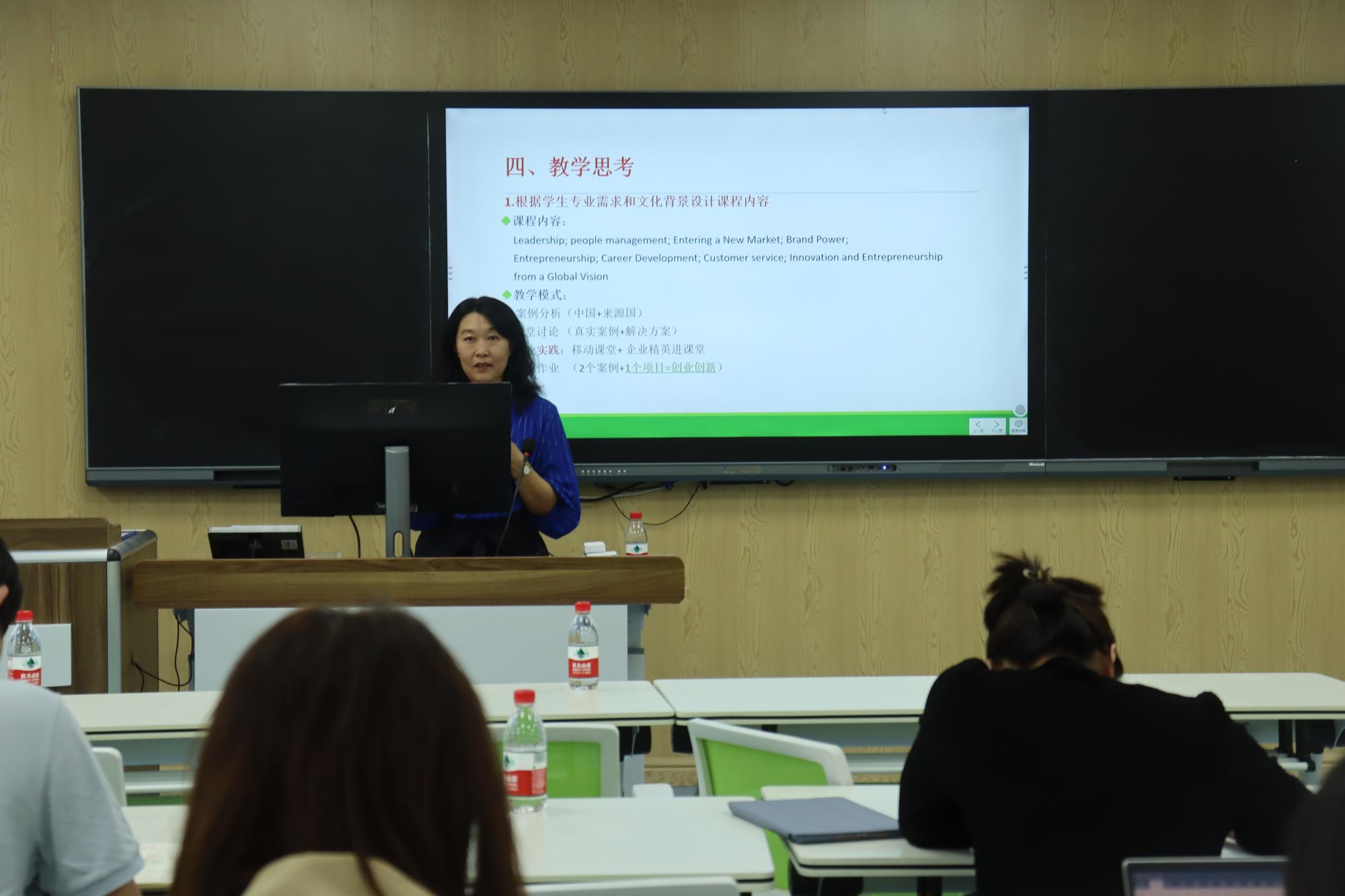 古昕博士以丰富的教学经历和诙谐幽默的语言,从学情分析出发,分析了国际学生与中国学生在学习理念、学习思维方面差异,通过生动案例,展示了独特的留学生课程教学方法。倪文斌教授以《Operation Management》为例,从理论教学、实践操作两方面详细讲解了留学生课程授课的方法和策略。孙久荣副教授认为教师要以学生为中心,基于目标导向,根据学生背景做好教学设计,并建议应注重与留学生的共情交流。