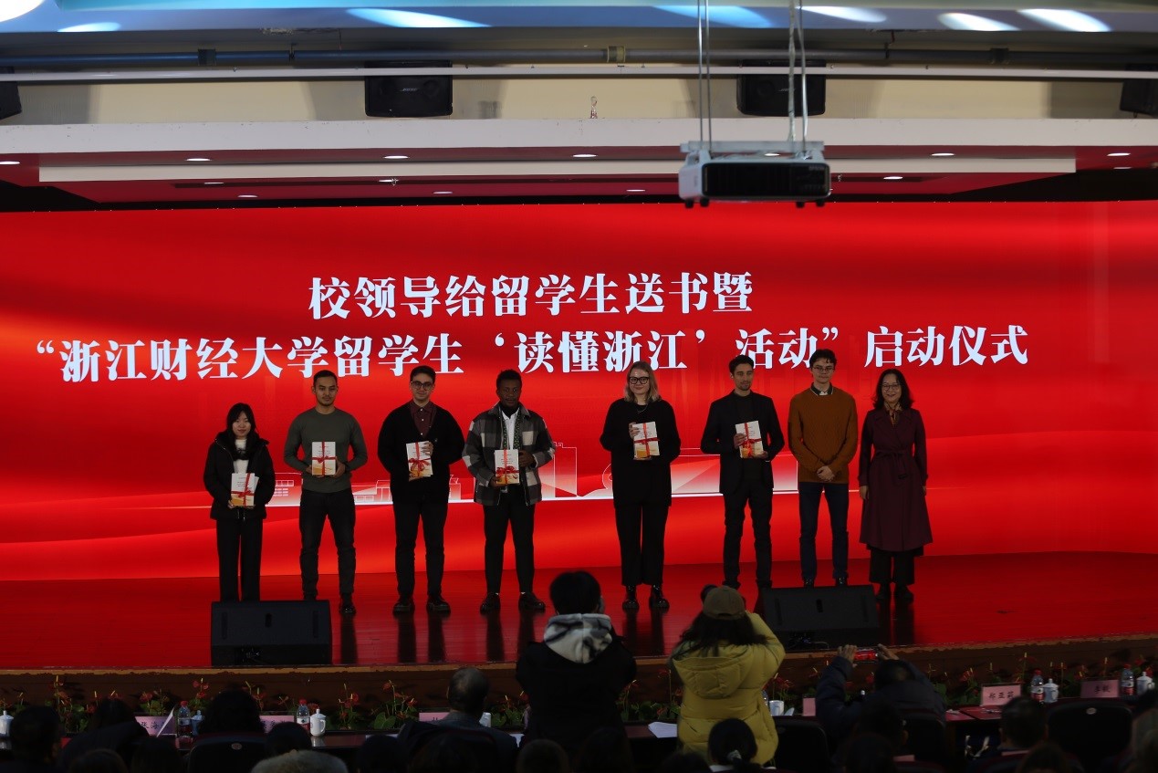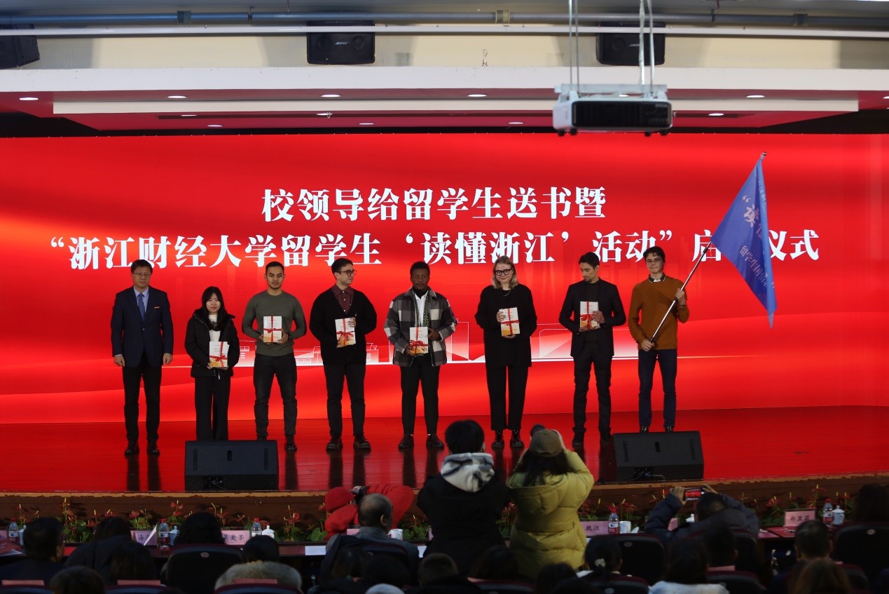 活动举行了给留学生送书与留学生“读懂浙江”活动启动仪式。党委副书记、副校长(主持行政工作)魏江亲手将“读懂浙江”的留学生国情教育活动旗交到留学生手里,让留学生多走进浙江、了解浙江。郑亚莉副校长给留学生代表赠送了《之江新语(Zhejiang,China:a new vision of development)》等书籍,让留学生多读书了解中国。留学生还为402cc永利历任领导、曾在402cc永利工作过的教师赠送了献花。《异域风情秀》、《花样年华》、《汉风雅韵》展现了我校留学生多元文化特色与乐观向上的精神风貌。北京理工大学、对外经济贸易大学、浙江大学、浙江工业大学、浙江工商大学等高校国际教育学院领导以视频方式送来祝福,毕业的留学生们也从不同国家发来院庆祝福视频,留学生韦辰和钱多多分别现场演讲送祝福。402cc永利成立十周年院庆活动在留学生共唱《相亲相爱》中圆满结束。