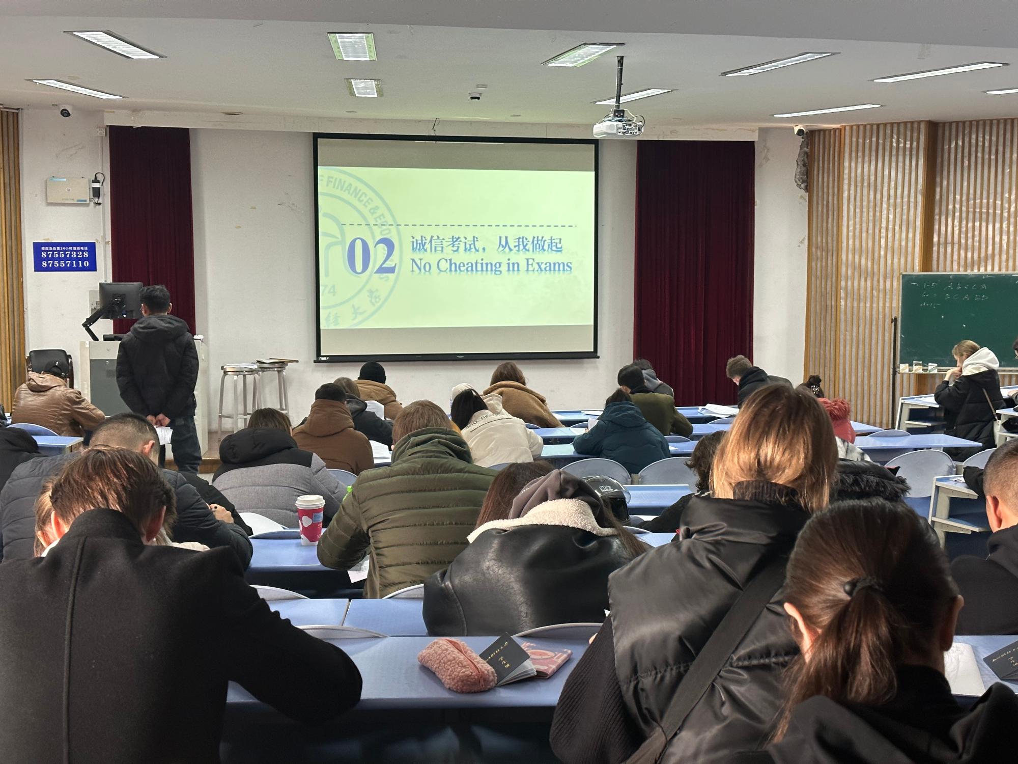 12月26日下午,402cc永利在A201召开了2023级国际学生期末动员暨考风考纪大会。全体辅导员、教学秘书及2023级全体新生参加了本次会议。