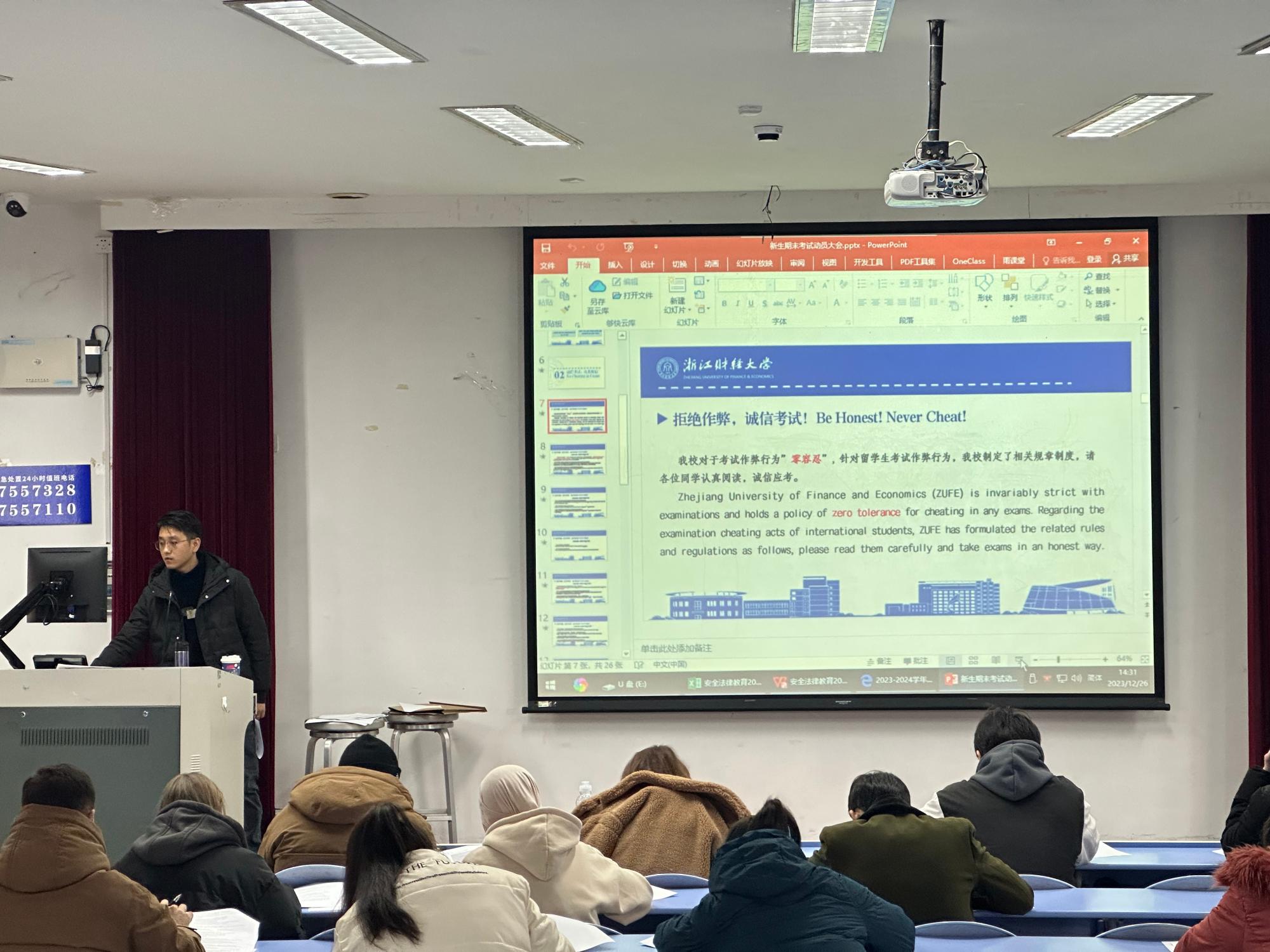 随后教学办秘书陈勃静老师通过列举历年考试违纪案例加深国际学生对考试作弊严重后果的认识,让同学们严格遵守考场纪律,坚决杜绝侥幸心理。