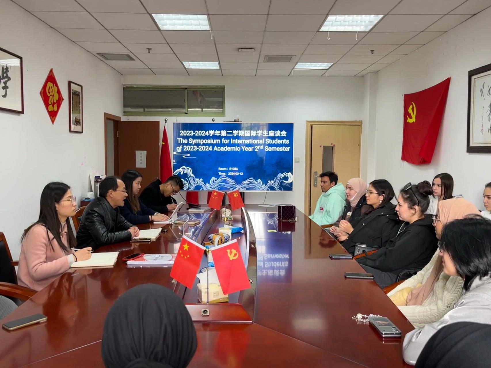 3月12号下午,我院举行了新学期学生座谈会,院长柴志贤、辅导员汪博林、研究生秘书蓝莹、教学秘书陈勃静,与来自不同专业不同年级二十余名国际学生亲切座谈。