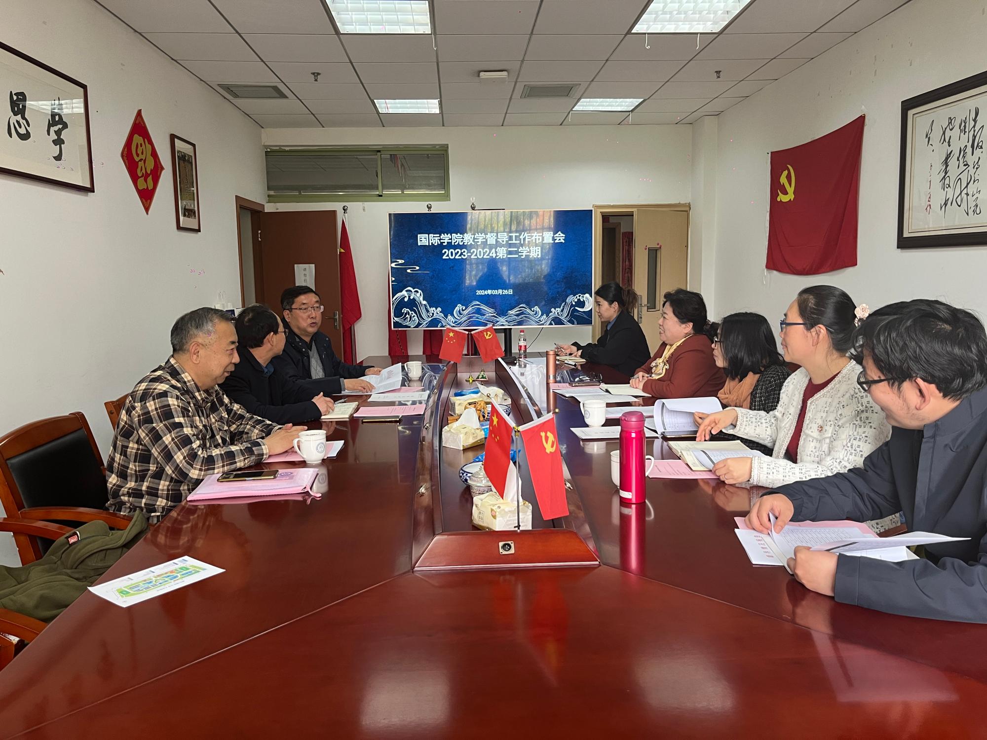 4月26日下午,我院召开了新学期留学生教学督导会议,校督导委主任崔大树、留学生教学督导组组长李汉强、402cc永利院长柴志贤、督导组成员沈渊、陈淑莹、赵倩、许光等参加会议。