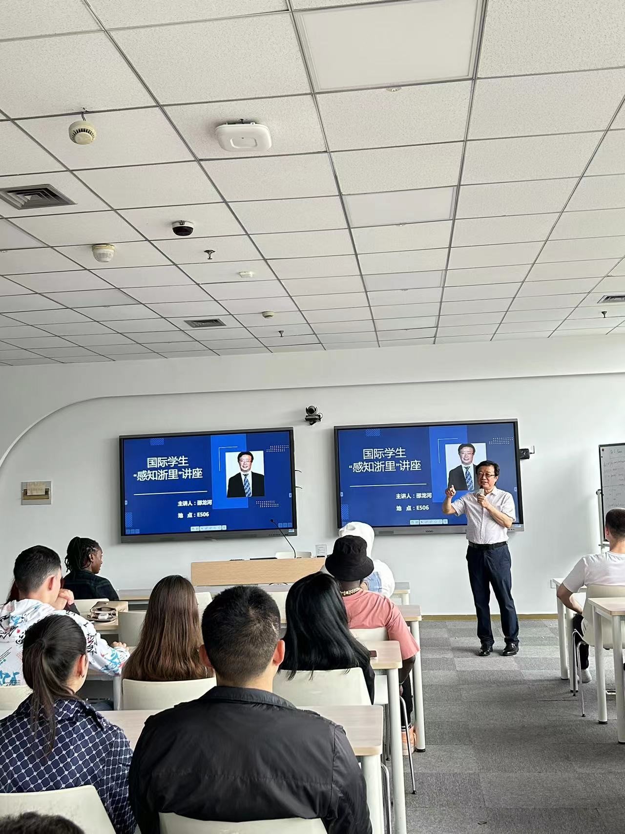 6月8日,汇孚集团总经理邵龙河为我校国际学生作题为“感知浙里”的专题讲座。境内相关专业的国际学生认真聆听了此次讲座。