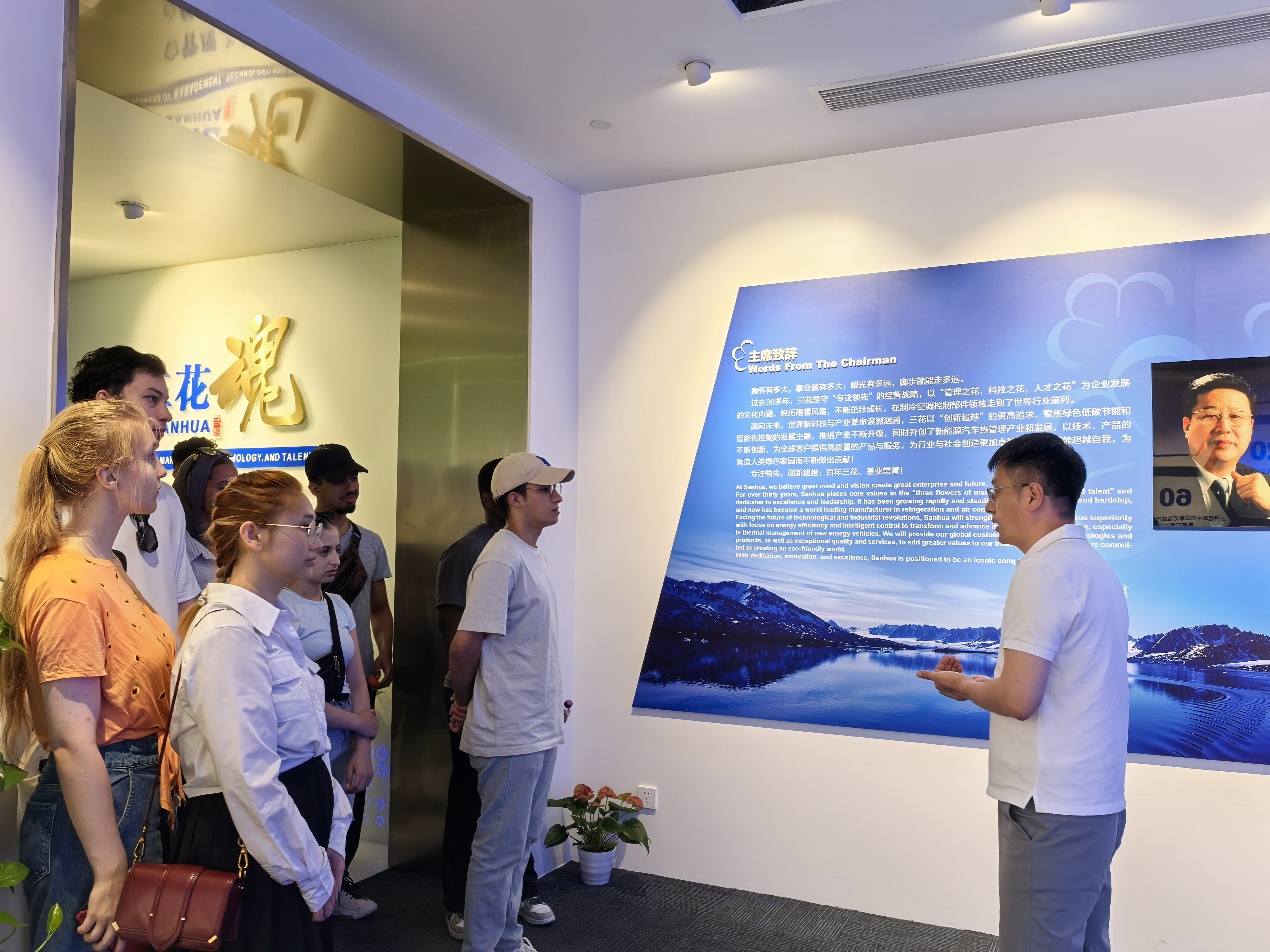 7月9日上午,我院组织部分留学生赴三花控股集团有限公司参观学习,感受浙江的企业发展和现代化智能制造的魅力。
