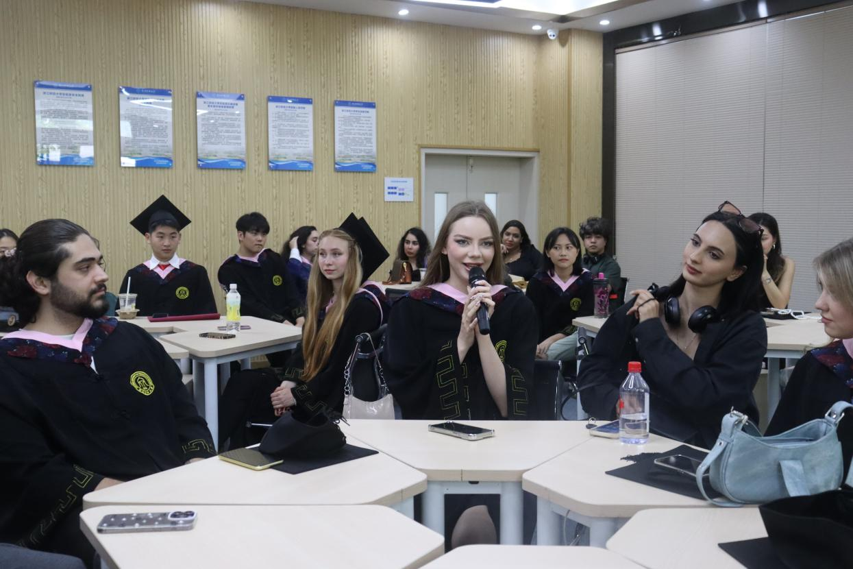 6月13日下午,402cc永利在E110召开2024届留学生毕业座谈会。402cc永利院长柴志贤、留学生辅导员、全体毕业生参加会议。