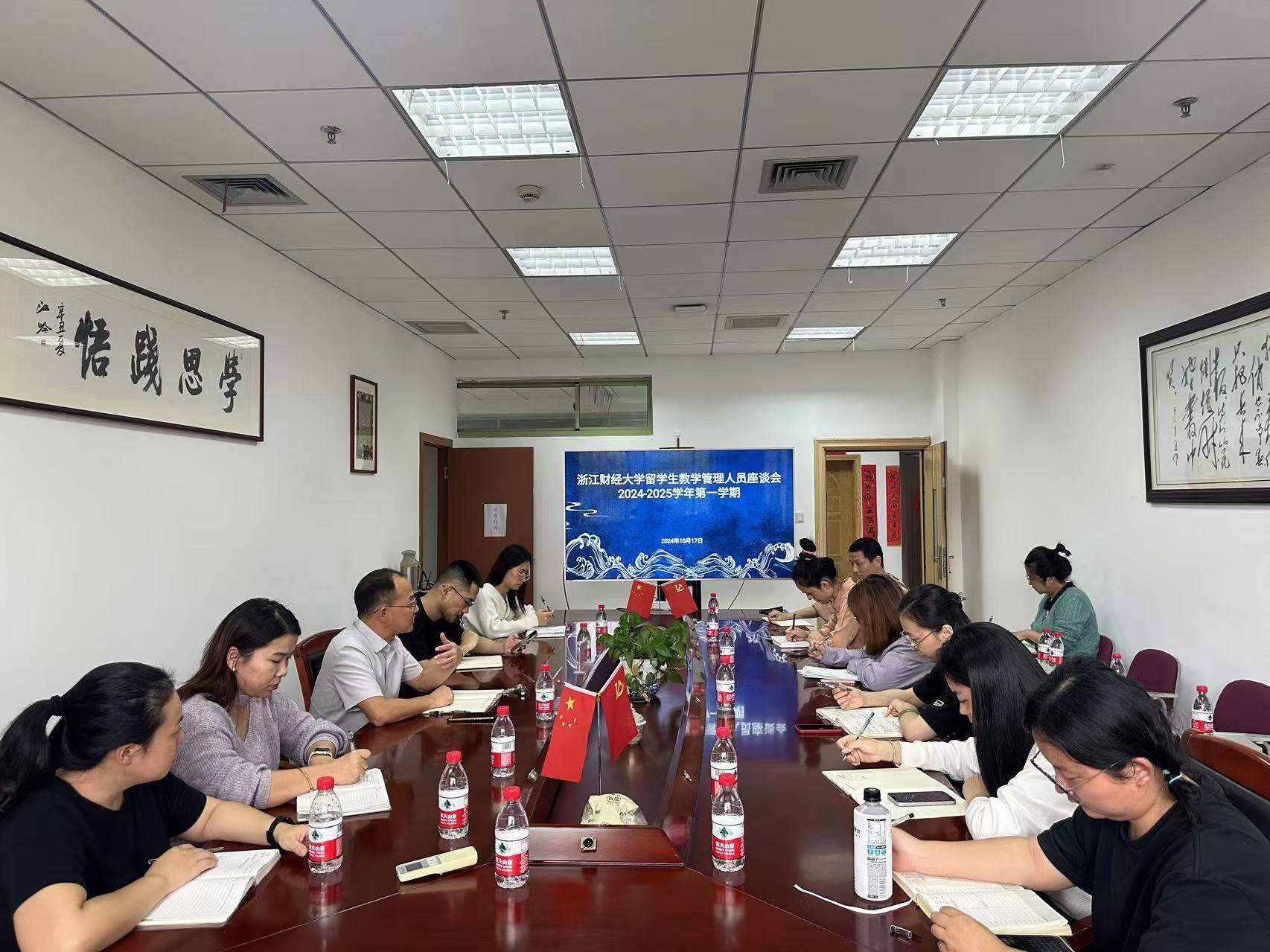 10月17日下午,在402cc永利E103会议室举行了留学生管理人员座谈会。402cc永利院长柴志贤、副院长黄志雄、研究生秘书蓝莹、教学秘书陈勃静以及各留学生培养二级学院的教学秘书与研究生秘书出席了本次座谈会。此次座谈会旨在深入探讨留学生趋同化教学管理模式的现状和未来发展方向,加强教学管理人员之间的沟通与合作,共同提升留学生教学管理质量。