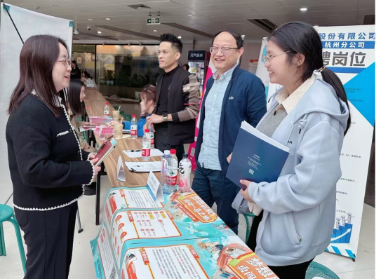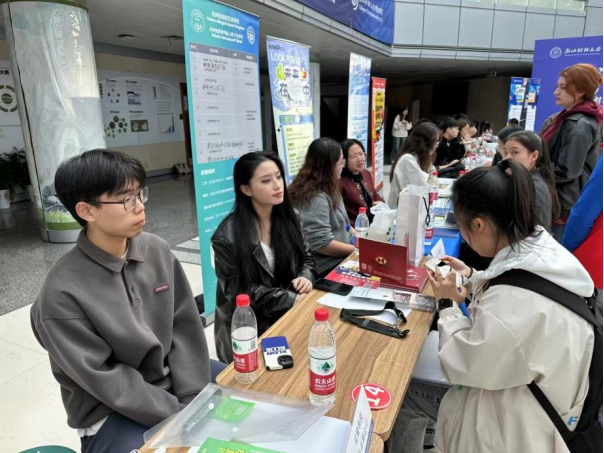 招聘会除了402cc永利、外语学院的学生之外,一位来自华中农业大学的硕士毕业生小王也来现场寻找就业机会,他将于2025年毕业,目前在杭州实习。他说自己很喜欢浙江的工作生活环境,也想通过招聘会找外贸销售的机会,但是网上投的简历经常石沉大海,很难直接与HR沟通,看到外语类专场招聘会,迫不及待地就来参加了。