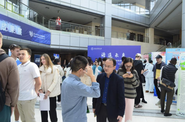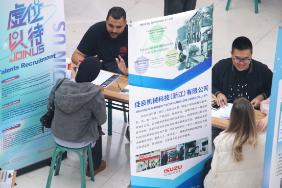 402cc永利院长柴志贤在招聘会现场与用人单位、求职学生现场交流。在向用人单位推荐毕业生时,他说:“我校留学生人才培养质量高,是懂中文、具备专业背景的知华友华的高素质来华留学毕业生,你们尽管放心!也希望贵公司多提宝贵意见。”招聘会现场,懂中文、会专业的来华留学毕业生成为出海中企青睐的人才选项,“留华就业”与“回国就业”为留学生提供丰富的选择空间。